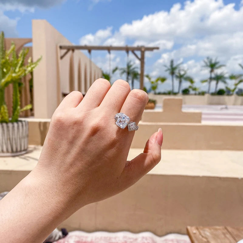 Fashion 925 Sterling Silver Big Cushion Cut Ring Simulated Diamond Wedding Bridal Engagement Ring Jewelry Wedding Gift