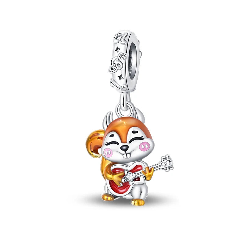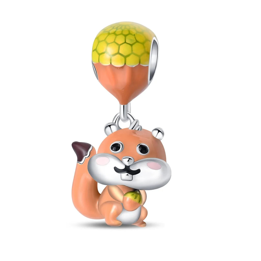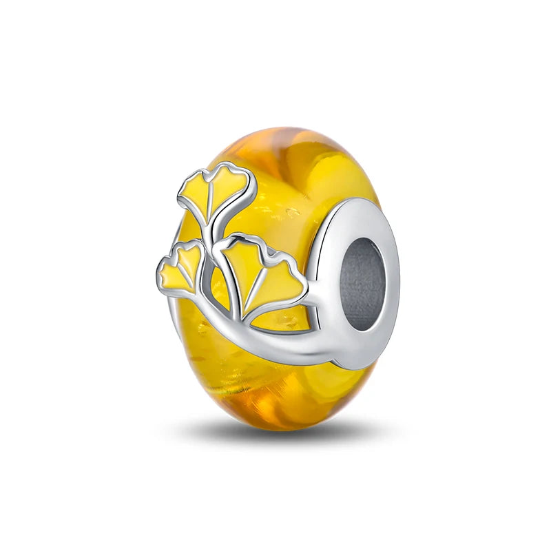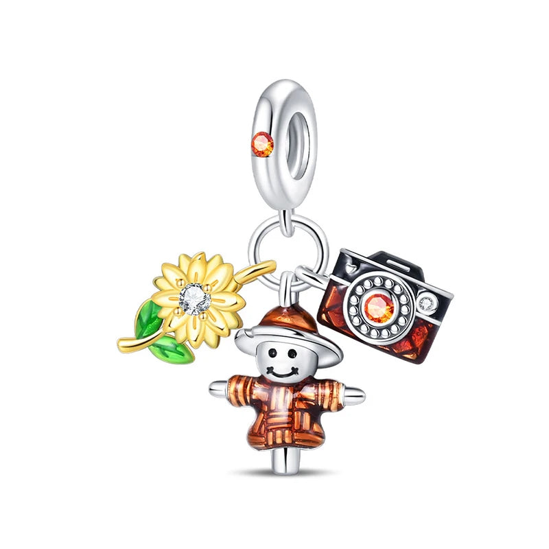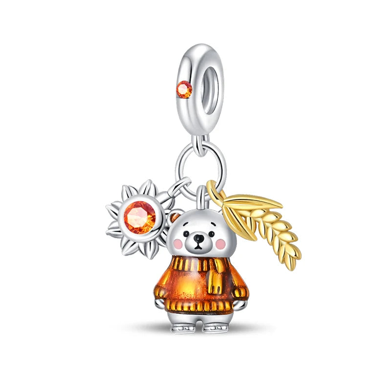 Fashion Autumn 925 Silver-Plated Squirrel Maple Leaf Pumpkin Yellow Charms Beads Fit 3mm 925 Original Bracelets DIY Jewelry