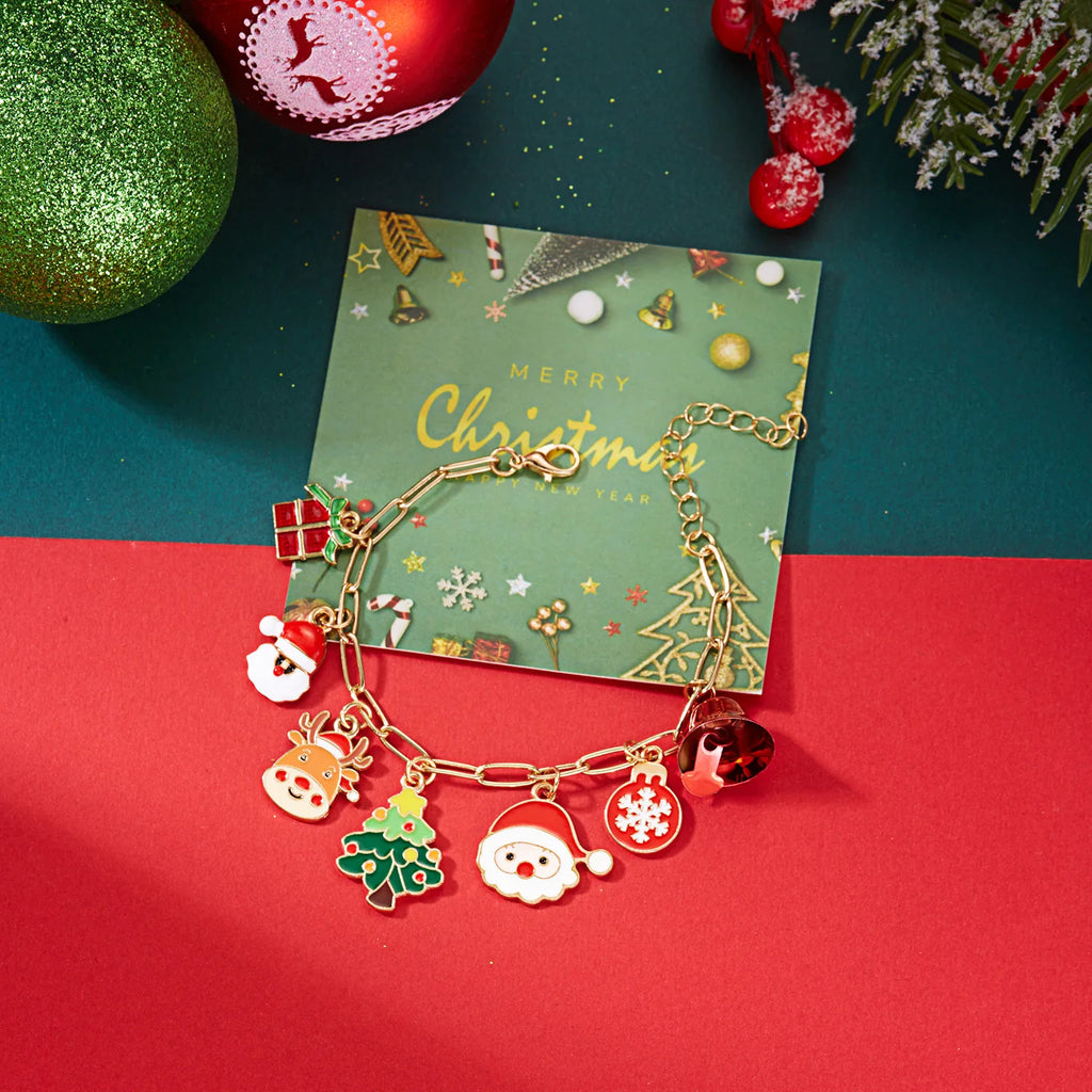 Fashion Christmas Metal Chain Bracelet for Women Santa Claus Christmas Tree Snowflake Bell Elk Bracelets Party Charm Jewelry