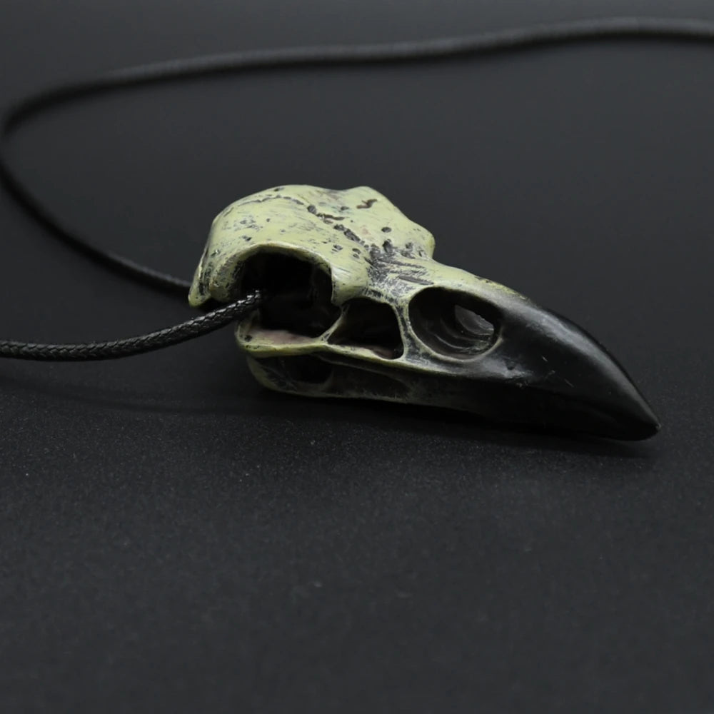 Goth Raven Skull Necklace Resin Replica Raven Magpie Crow Poe Gothic Gift,Halloween Raven Skull Necklace