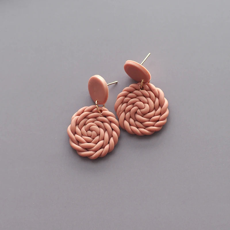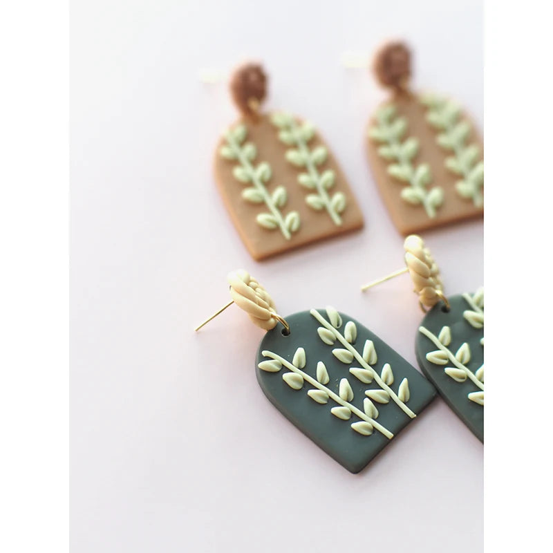 Leaves Heart Earthy Colors Arch Natural Handmade Polymer Clay Braided Pattern Earrings Dangle Sets Women Jewelry Holiday Wear