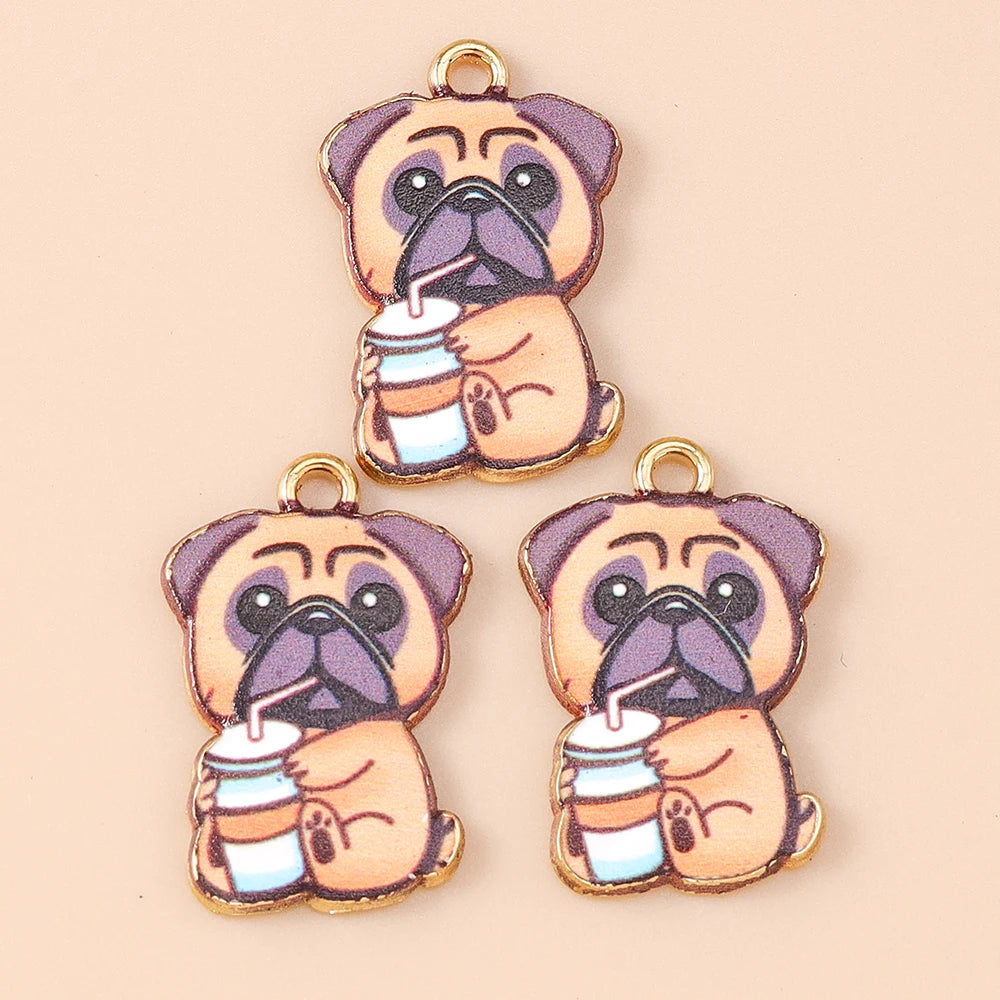 Leslie 10pcs New Cartoon Animal Dog Charms Enamel Metal Book Drinking Dog Pendants For Women DIY Necklace Earrings Jewelry Gifts