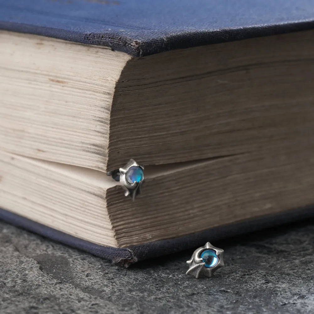 MKENDN 100% 925 Sterling Silver Earrings Men Women Vintage Dragon Wings Stud Earrings With Light Blue Stone Personality Jewelry