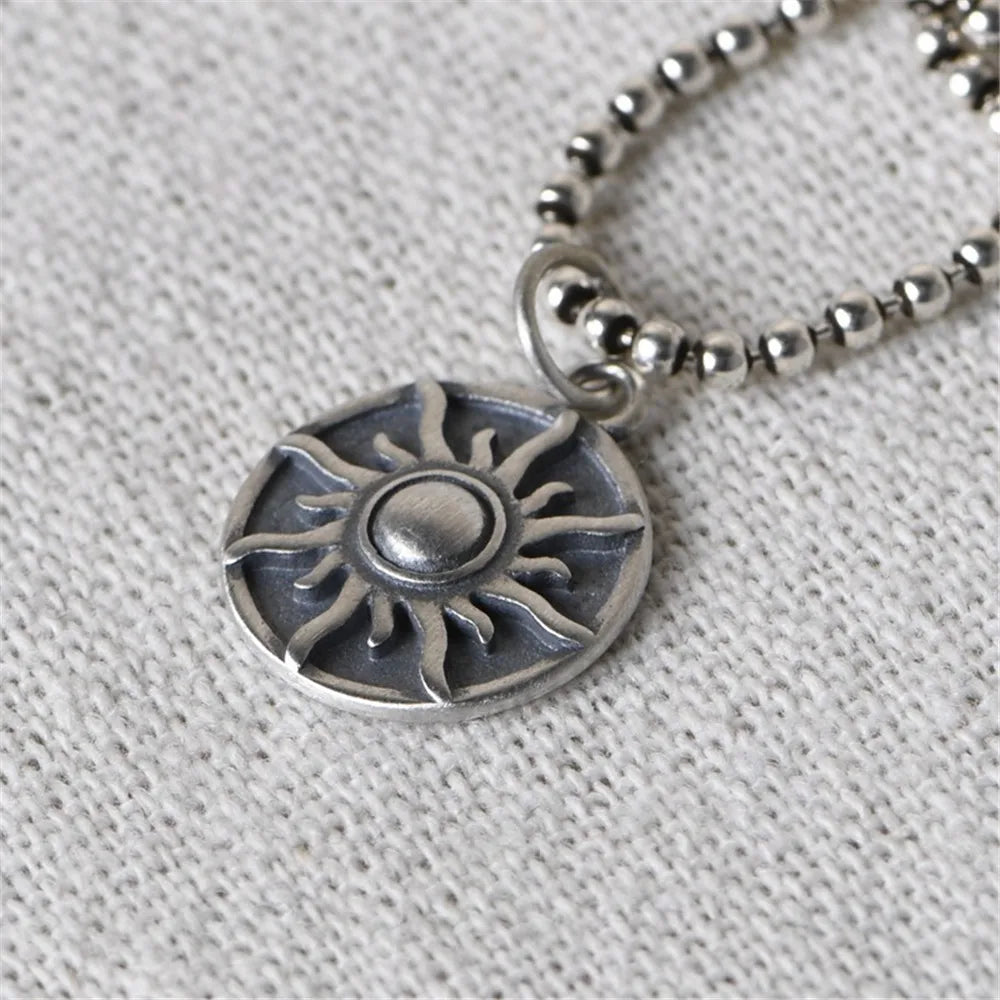 MKENDN 100% 925 Sterling SilverApollo Amulet Sun God Pendant Necklace Punk Style Sweater Chain Fine Jewelry