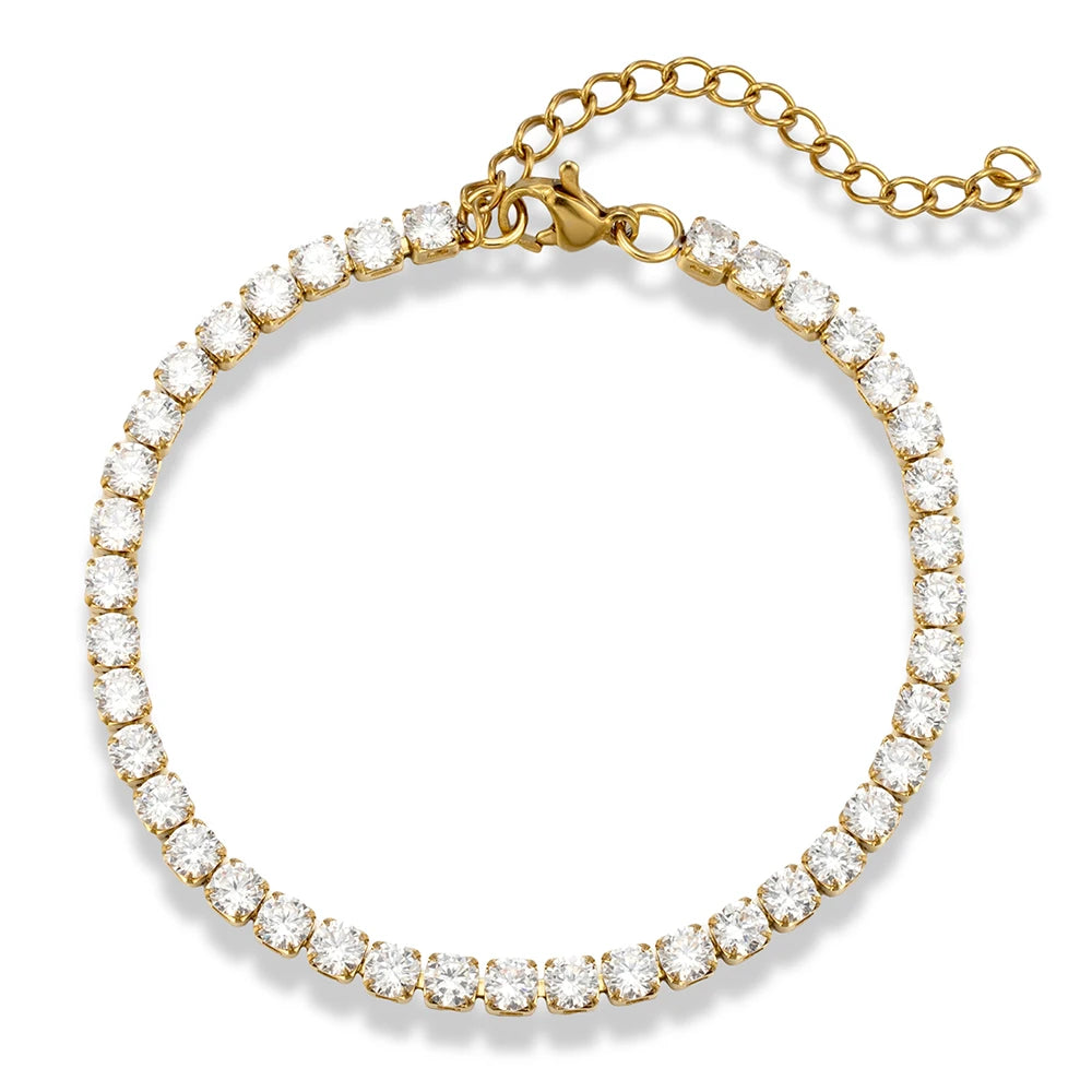 MKENDN 4mm High Quality Shiny Cubic Zirconia Chain Wrist Bracelet Bangle for Women Stainless Steel Exquisite Premium Jewelry New