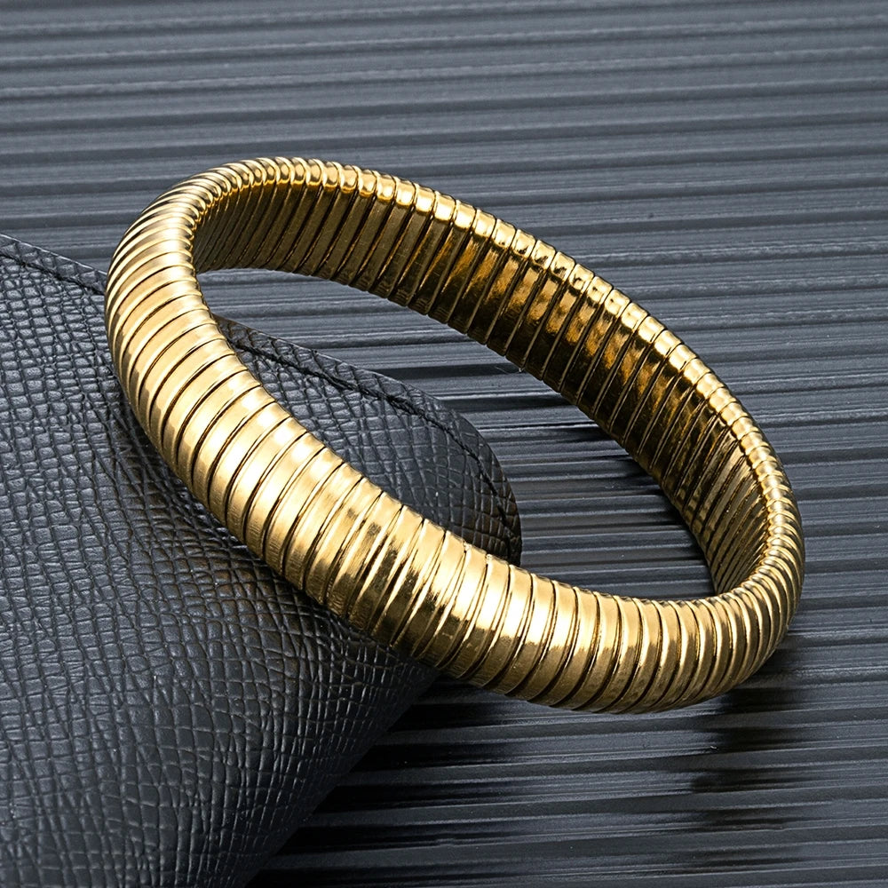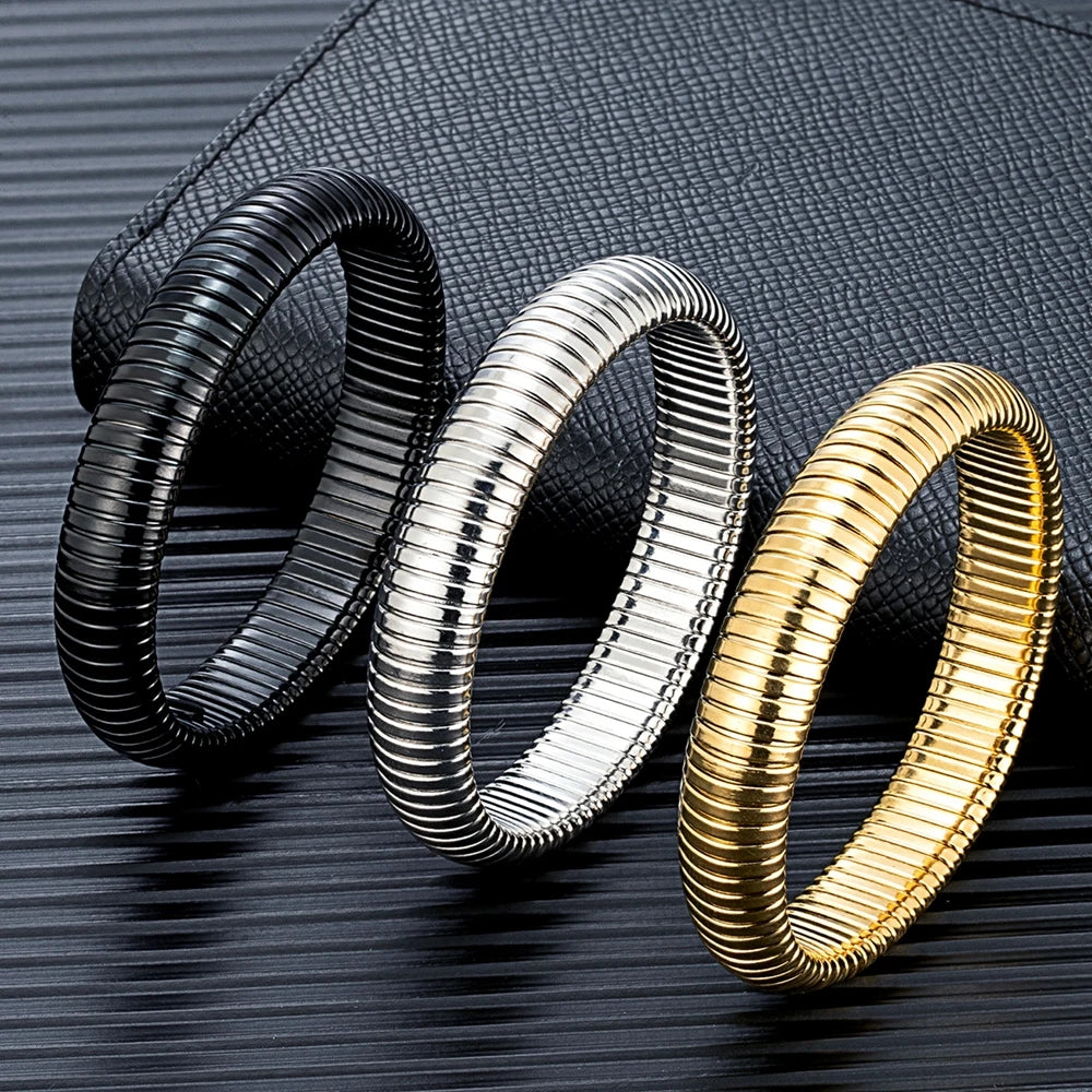 MKENDN Fashion Women Antique Original Design Bracelet Wide And Narrow Elastic Bracelet Ladies Stainless Steel Trendy Bracelet