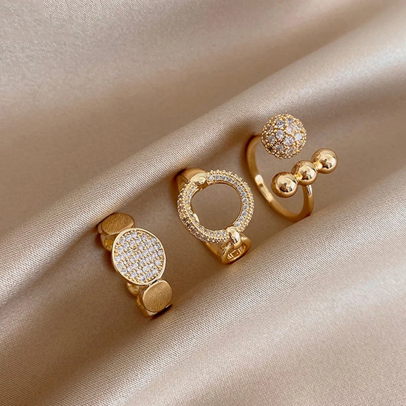 New Classic Zircon Circle Open Ring For Woman Exquisite Rhinestone Adjustable Finger Rings Girls Wedding Party Jewelry Gift