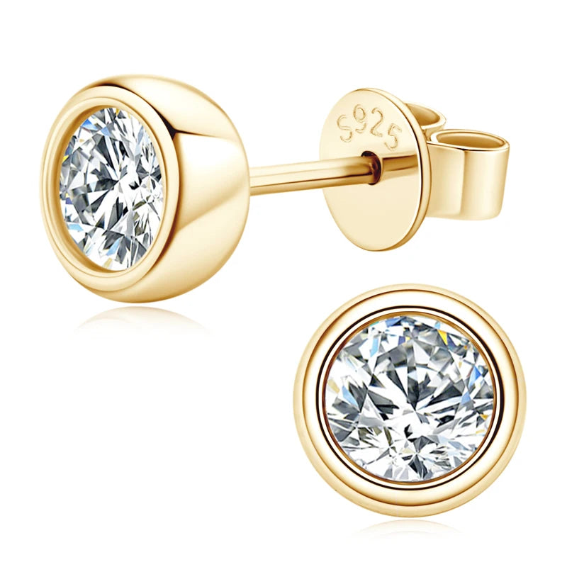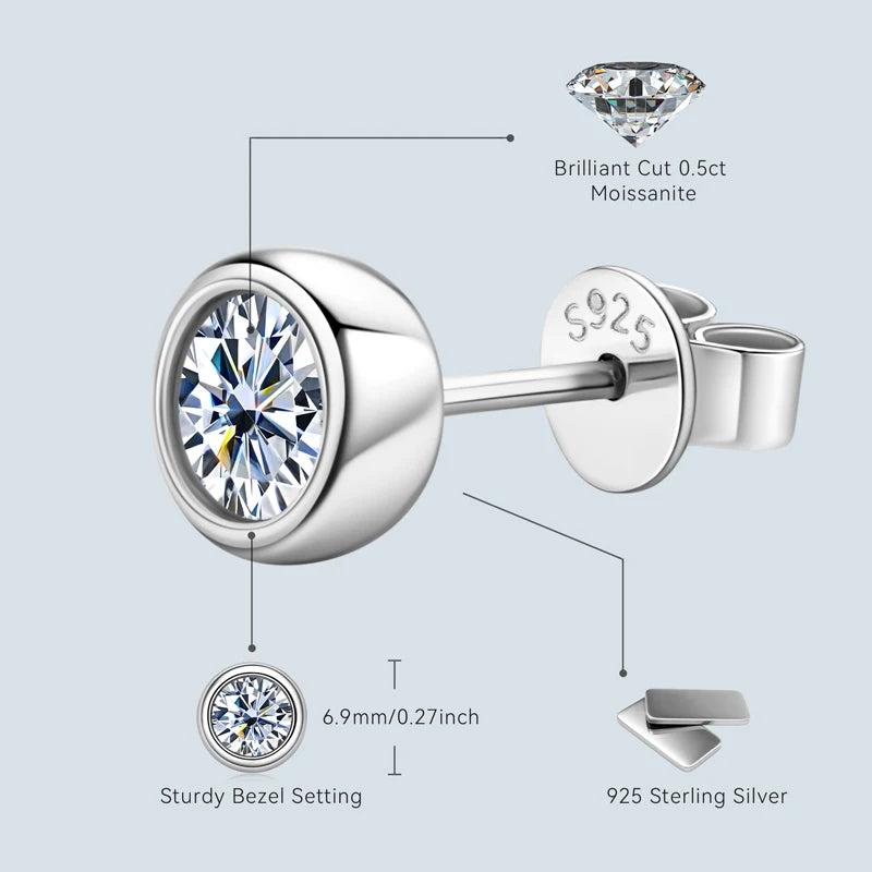 OXTAO 5mm 6.5mm Round Stud Earrings Real 925 Silver Moissanite Bezel Setting Simple Bubble Earrings Fashion Wedding Jewelry Gift