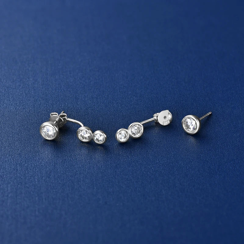 OXTAO 925 Silver Stud Earring Round Cut Real Moissanite Ear Jacket Earrings for Women Beautiful Accessories Birthday Party Gifts