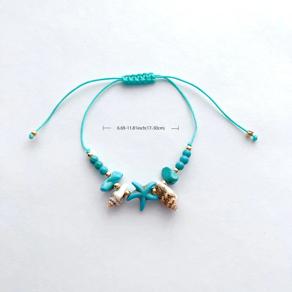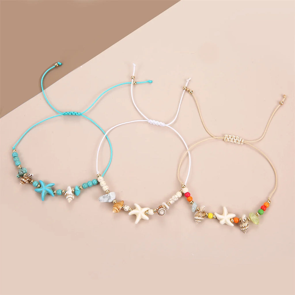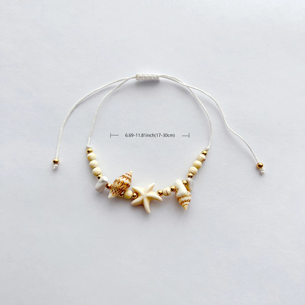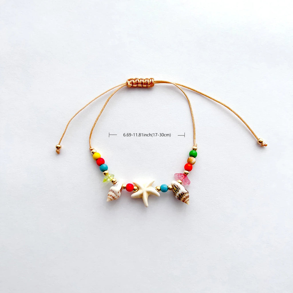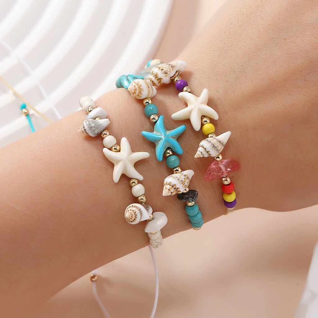 Stylish Bohemian Sea style Natural Seashell Beaded starfish Adjustable size hand string bracelet women's accessories