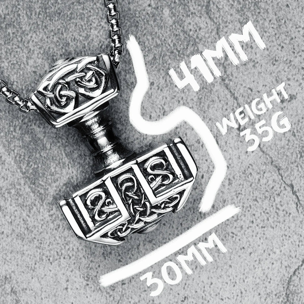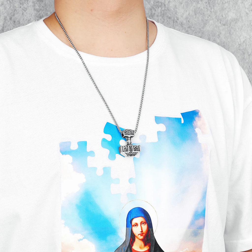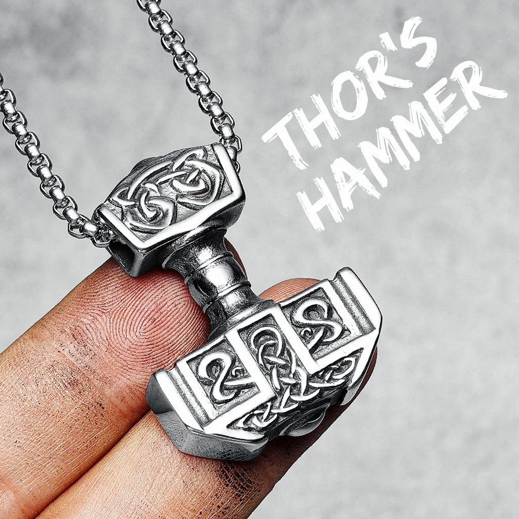 Viking Thor's Hammer Pendant Necklace 316L Stainless Steel Nordic Retro Soldier Men Chain Rock Punk for Friend Male Jewelry Gift