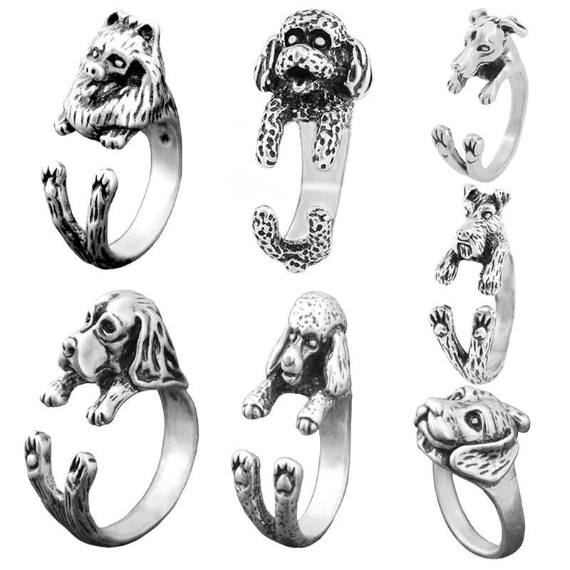 Vintage Bichon Dog&Schnauzer&Greyhound Love Pet Ring Women Boho Poodle Anel Masculino Rings For Men Jewelry Women Anillos Bijoux