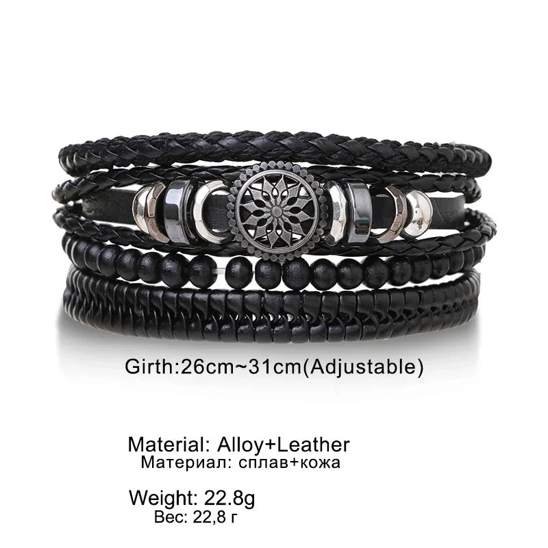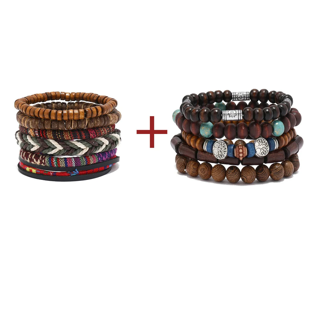 Vintage Cross Multi-Layer Beaded Wooden Beads Men's Bracelet Multi-Piece Set Bracelet