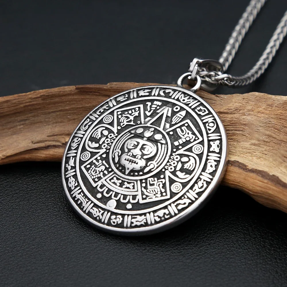 Vintage Ethnic Style Black Pattern Mayan Symbol Pendant Necklace For Men Stainless Steel Fashion Biker Heavy Jewelry Wholesale