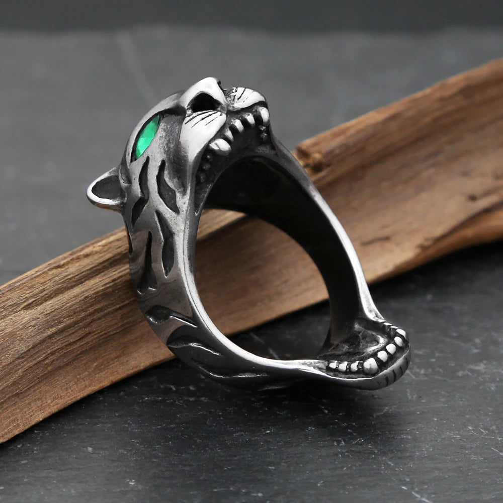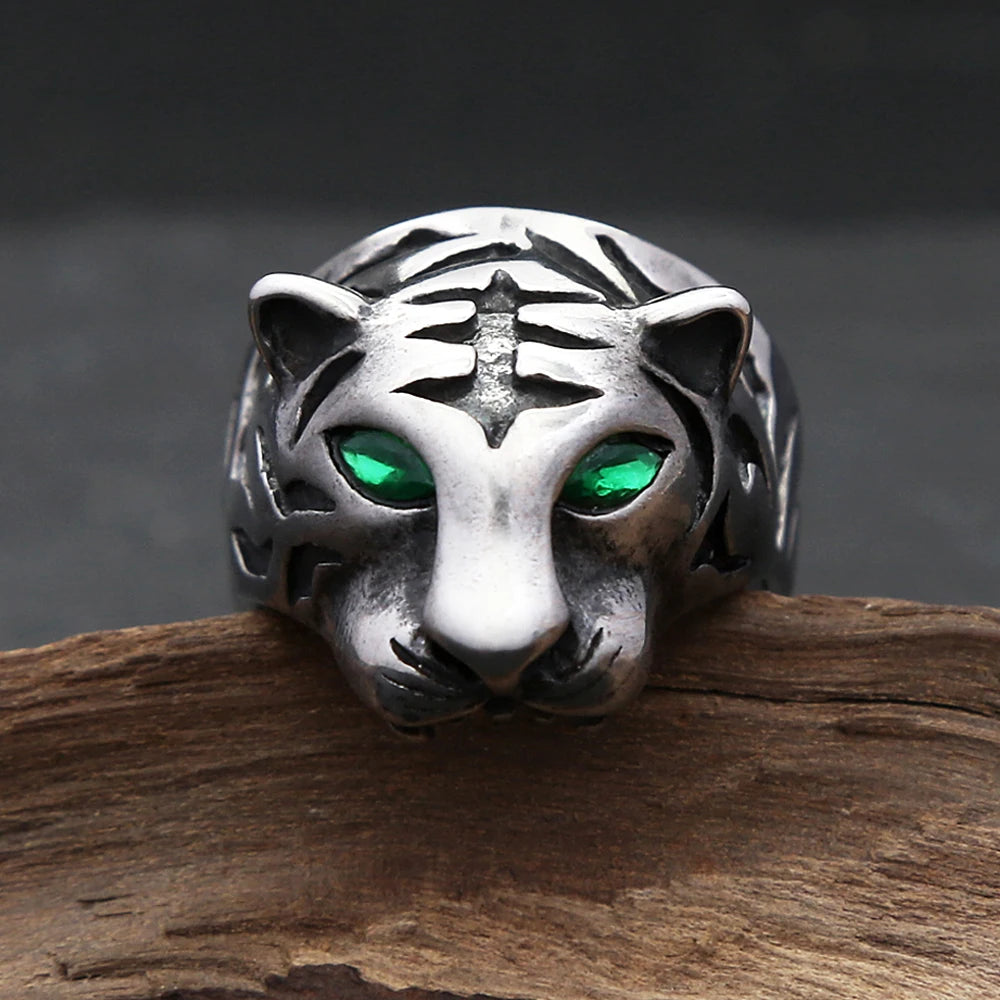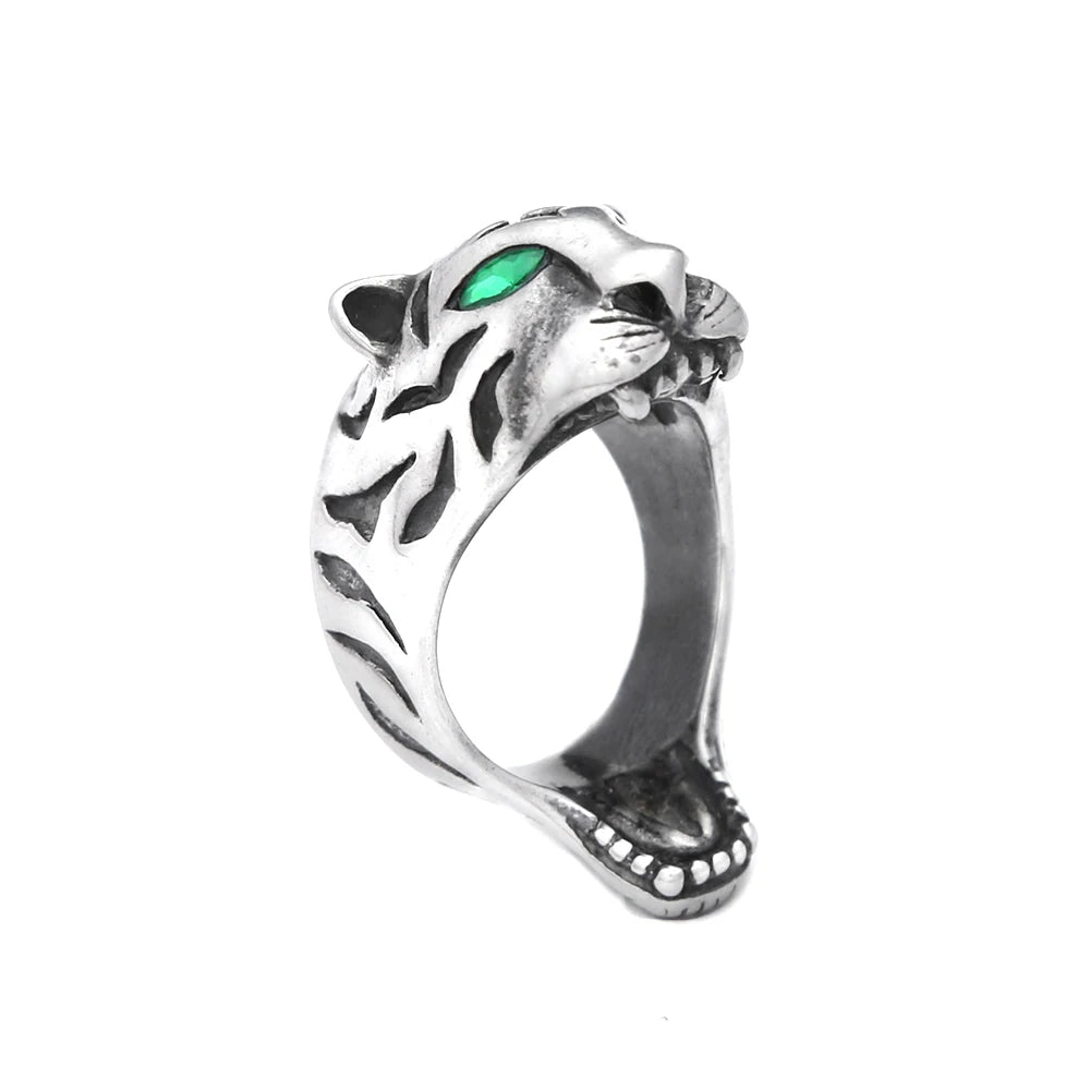 Vintage Punk Tiger Ring With Green Stone Eyes Stainless Steel Hip Hop Biker Animal Rings For Men Party Jewelry Gift Dropshipping