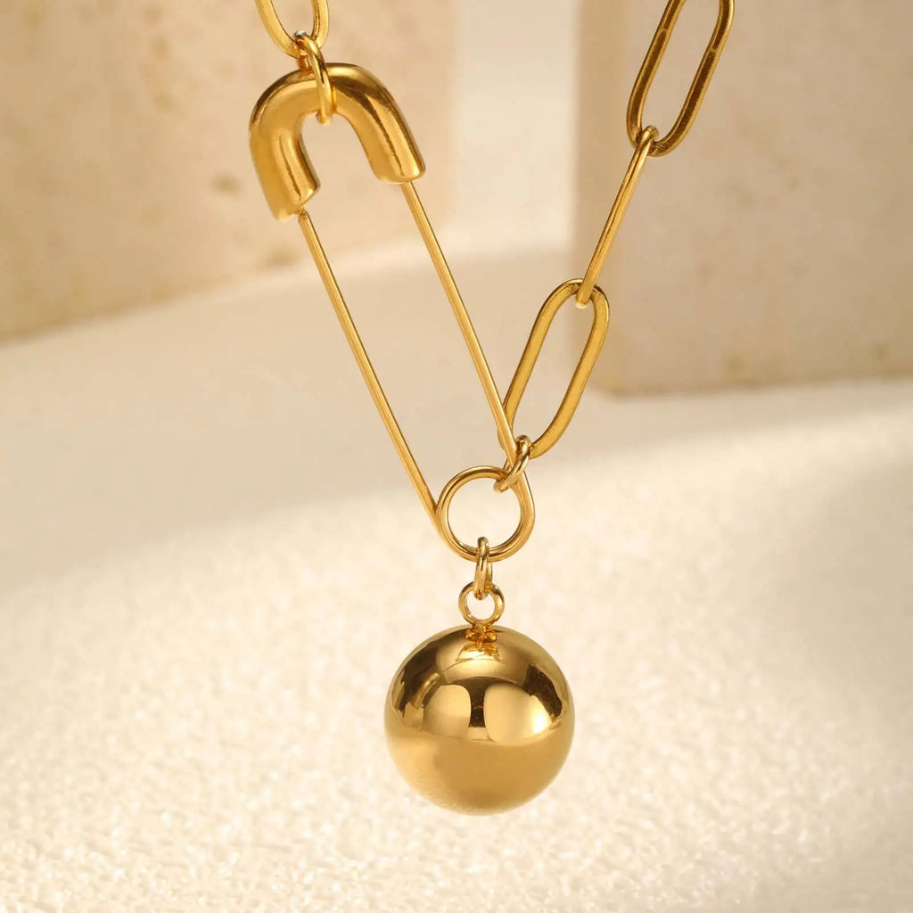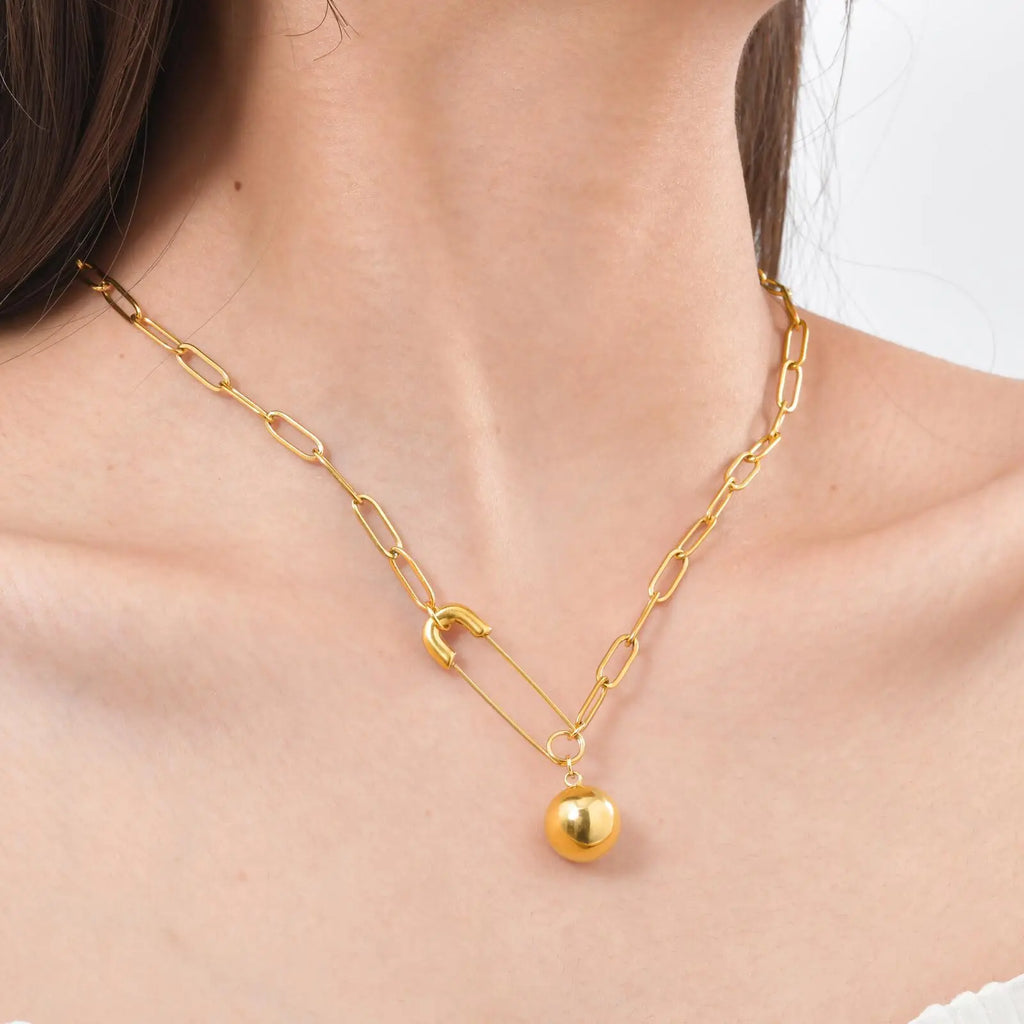 Vnox Gold Plated Round Ball Pendent Necklace For Women Fashion Jewelry Stainless Steel Paper Clip Chain Choker Gift To Girls