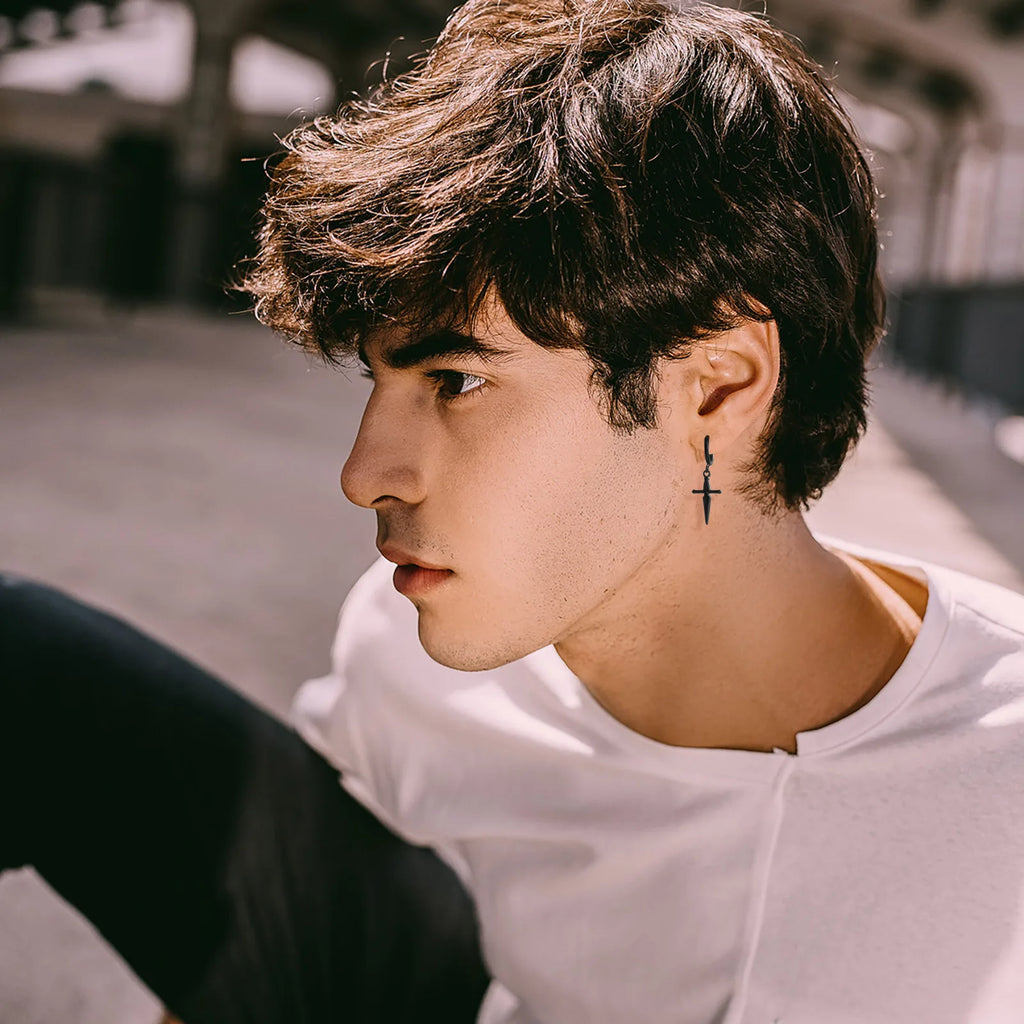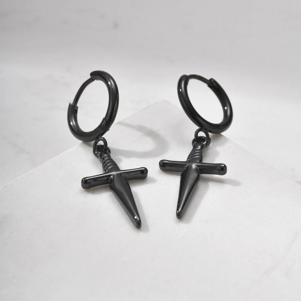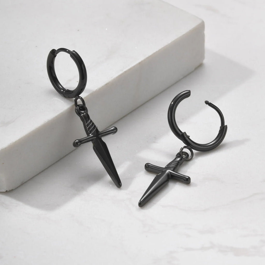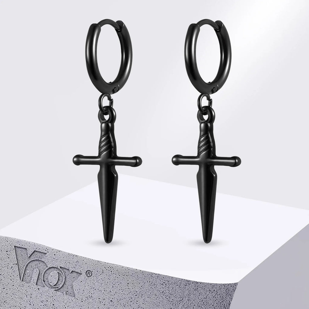 Vnox Gothic Dagger Sword Dangle Drop Earrings for Men Boys, Minimalist Stainless Steel Hoops,Hypoallergenic Fashion Jewelry