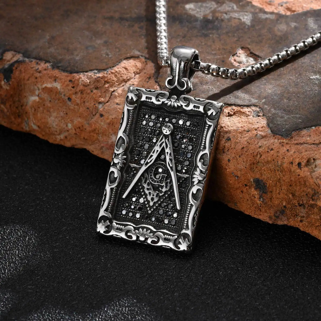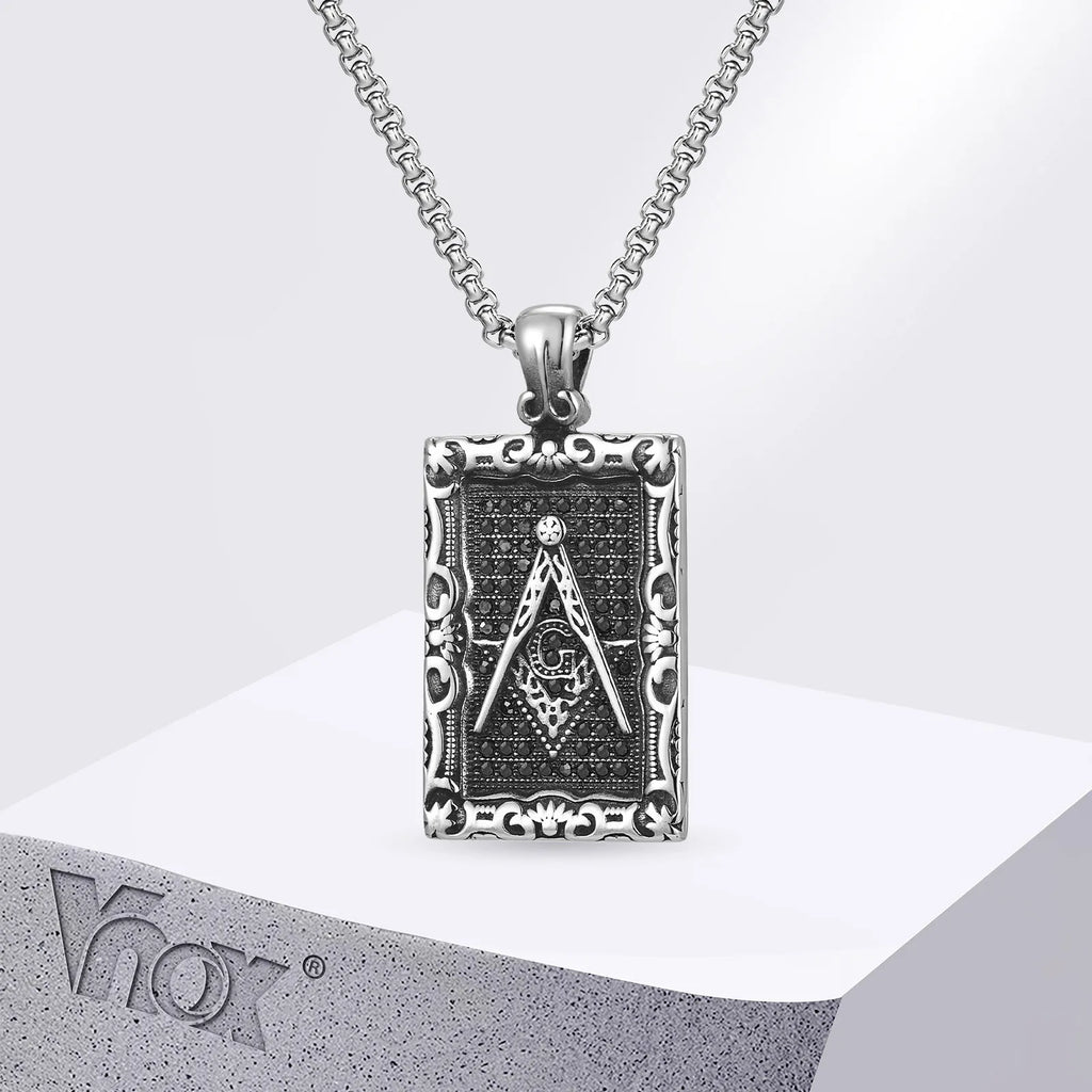 Vnox Mens Freemasonry Necklaces,Geometric Rectangular Badge with Masonry Pendant, US Style Accessory Gift