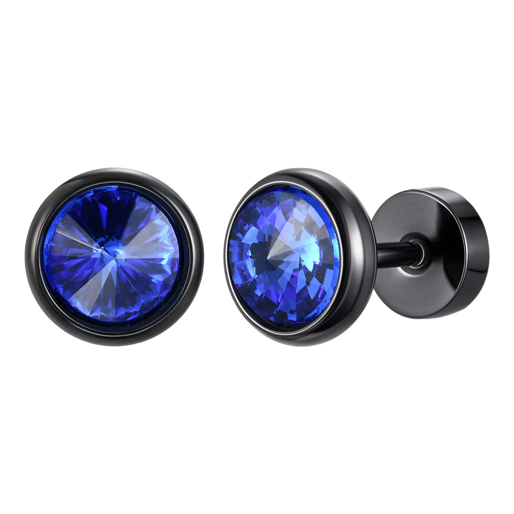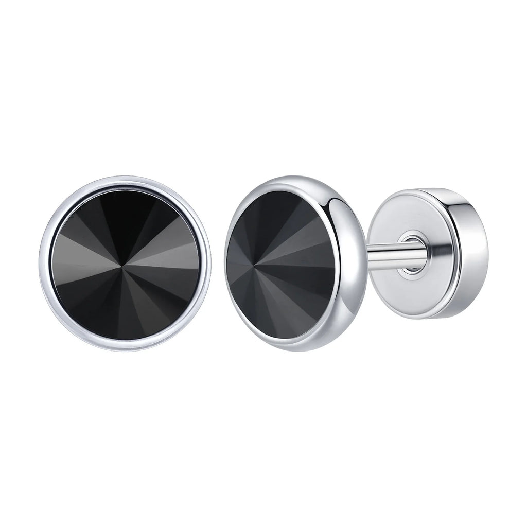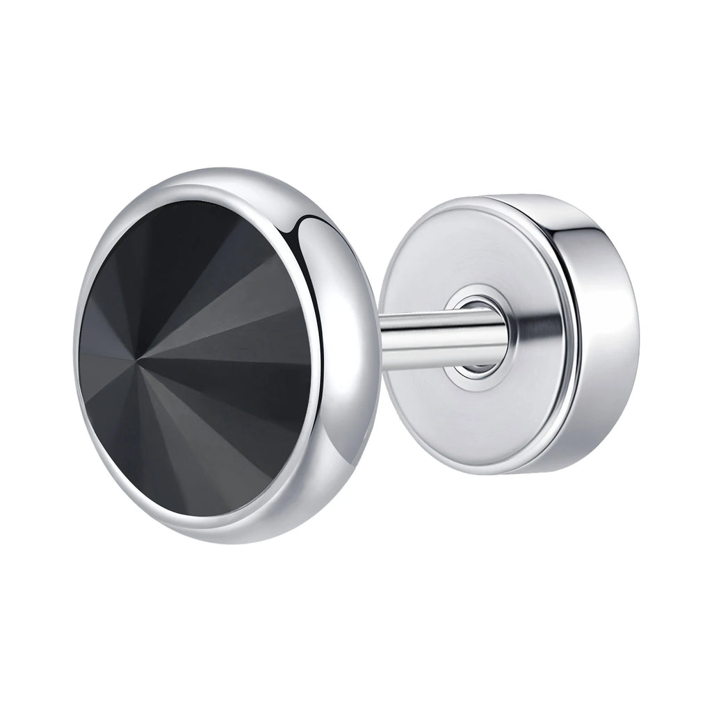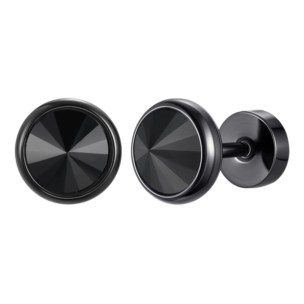 Vnox Multi-faced Cut Zircon Stone Earrings for Men Boys, Screw Back Stud Barbell Shaped Earrings,Black Stainless Steel Jewelry