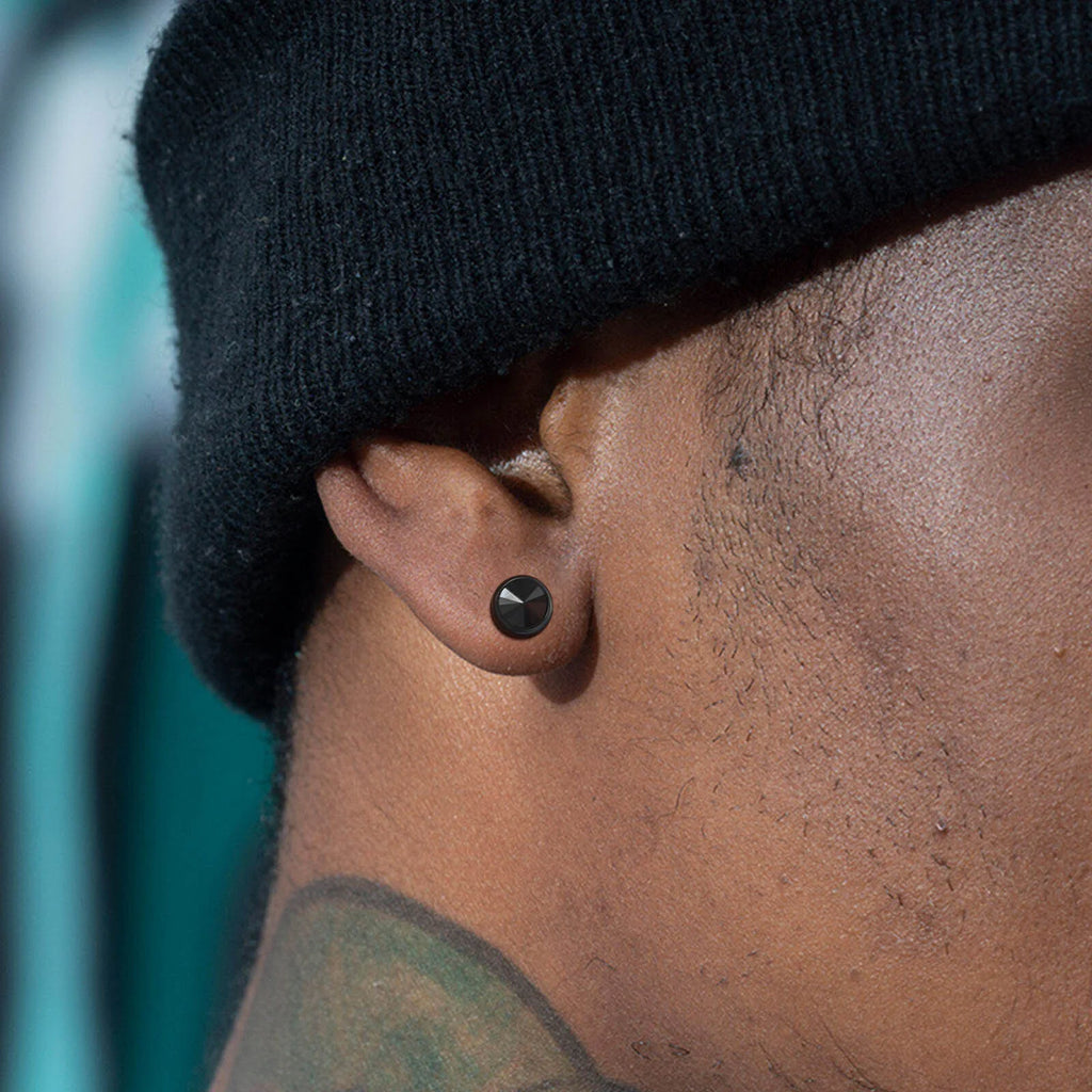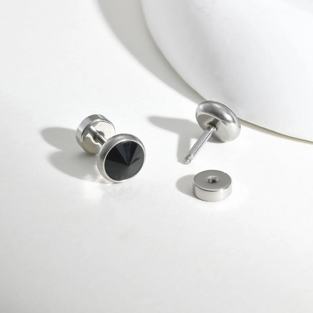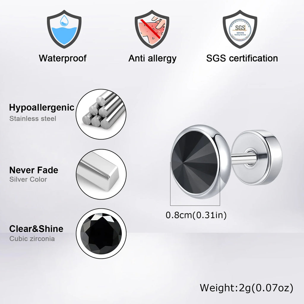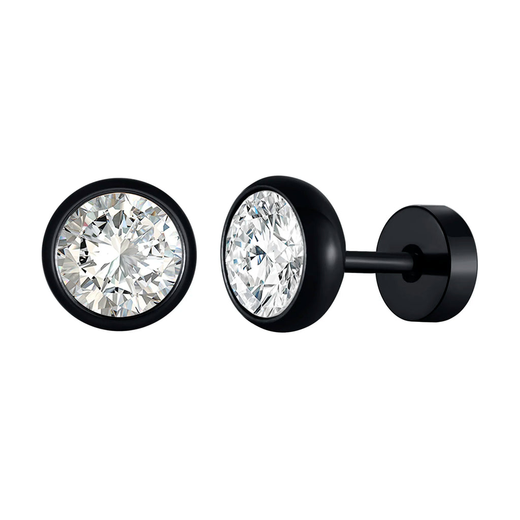 Vnox Multi-faced Cut Zircon Stone Earrings for Men Boys, Screw Back Stud Barbell Shaped Earrings,Black Stainless Steel Jewelry