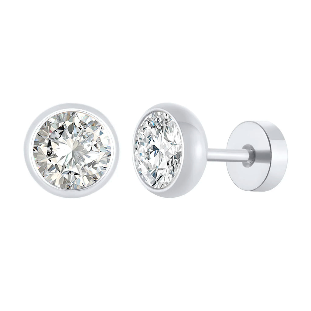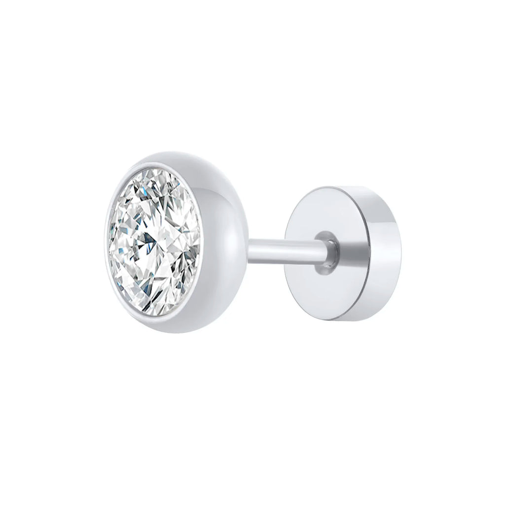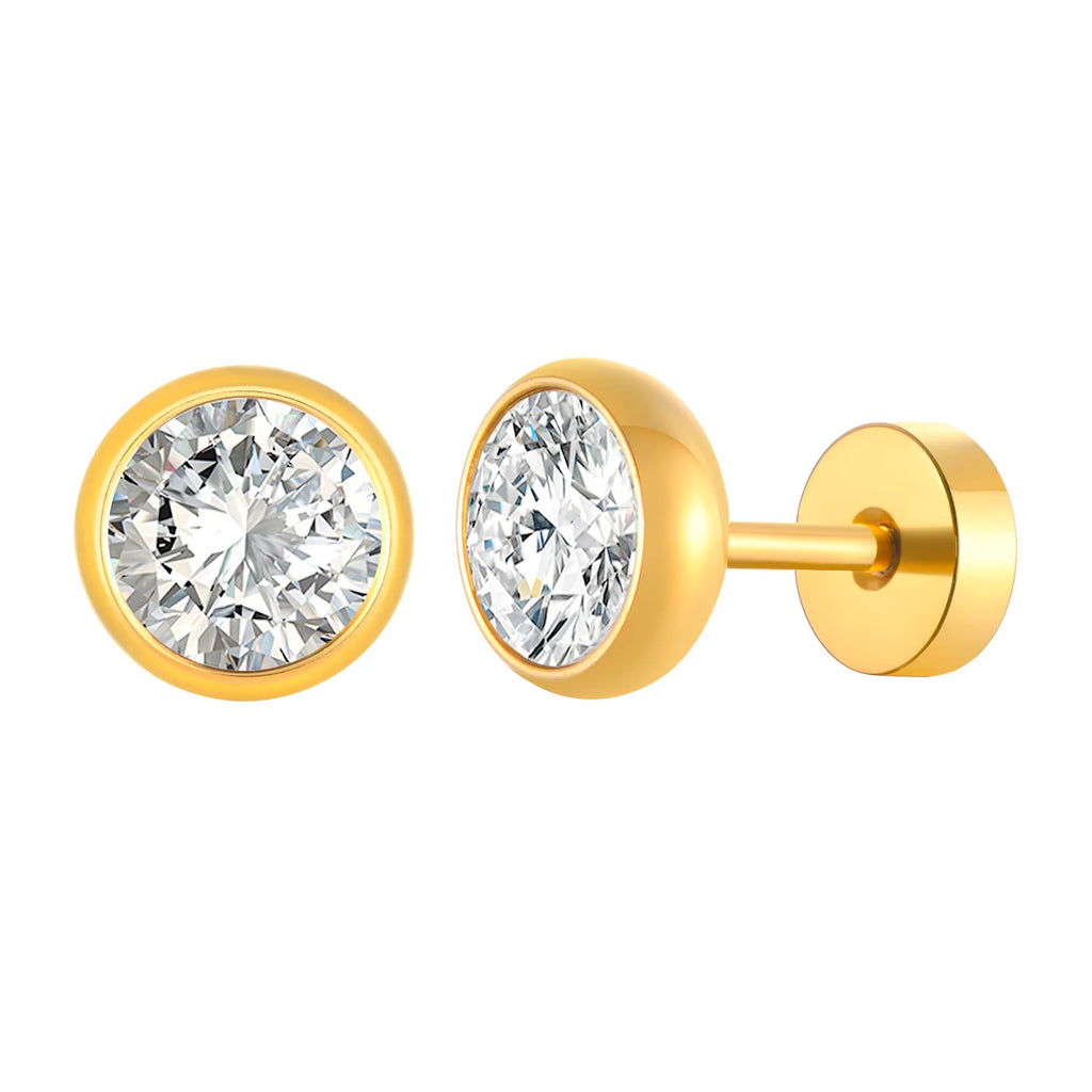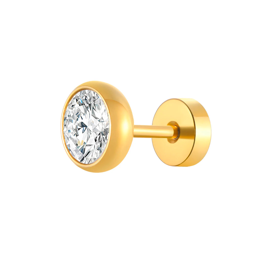 Vnox Multi-faced Cut Zircon Stone Earrings for Men Boys, Screw Back Stud Barbell Shaped Earrings,Black Stainless Steel Jewelry