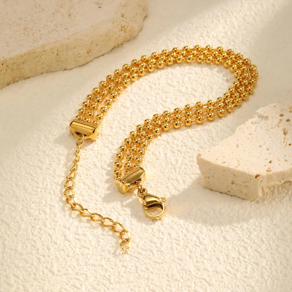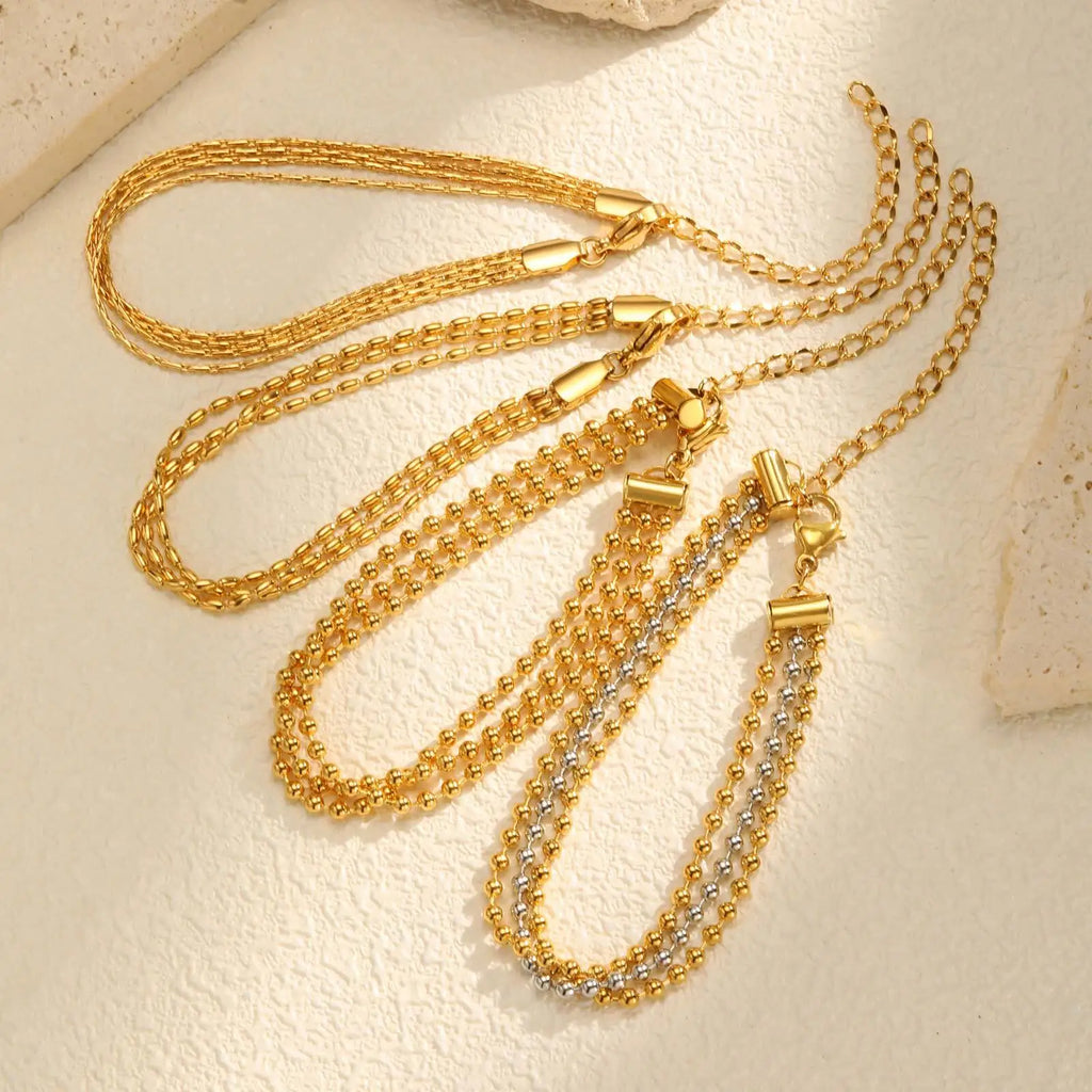 Vnox Multi Layer Beaded Bracelet For Women,Stainless Steel Waterproof Jewelry,Fashion Gold Plated Adjustable Chain Bracelet