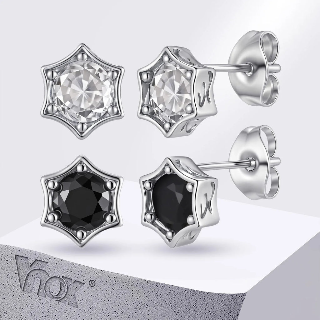 Vnox Simple Star Stud Earrings, Mens Women Small Round Zircon Stone Earrings Brincos, Punk Rock Ear Jewelry