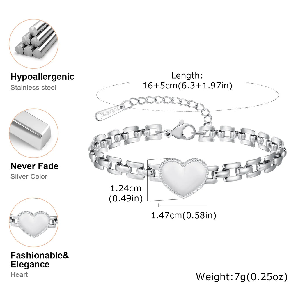 Vnox Stainless Steel Love Hand Bracelet For Women Gold Silver Color Strap Chain Bracelets Girls Heart Jewelry Girls Mom Gift