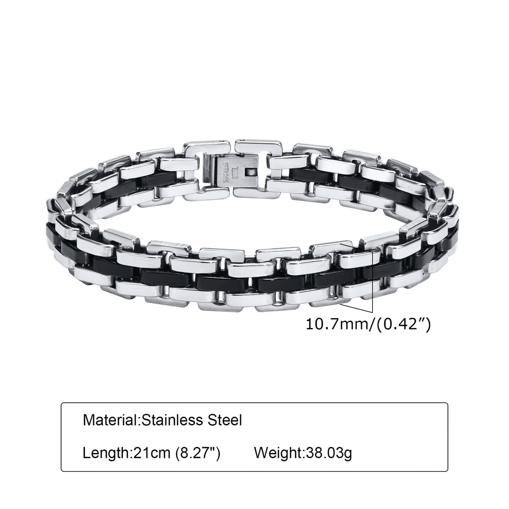 Vnox Stylish Strap Chain Bracelets for Men Boys Gift Jewelry, 10.7MM Wide Stainless Steel Links Wristband, Father's Day Gift Dad