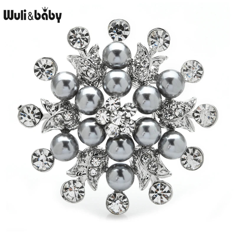 Wuli&baby Grey Pearl Snowflake Brooches For Women Unisex Big Party Casual Brooch Pins Gifts