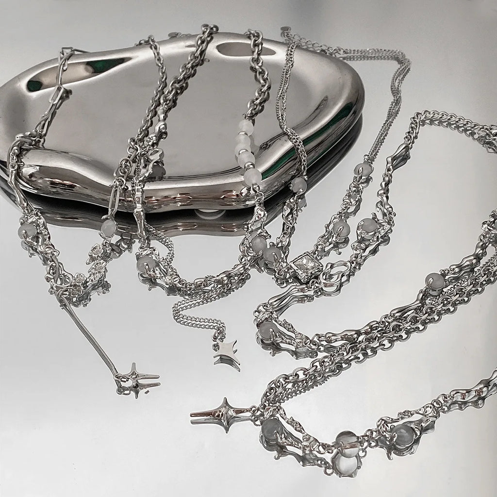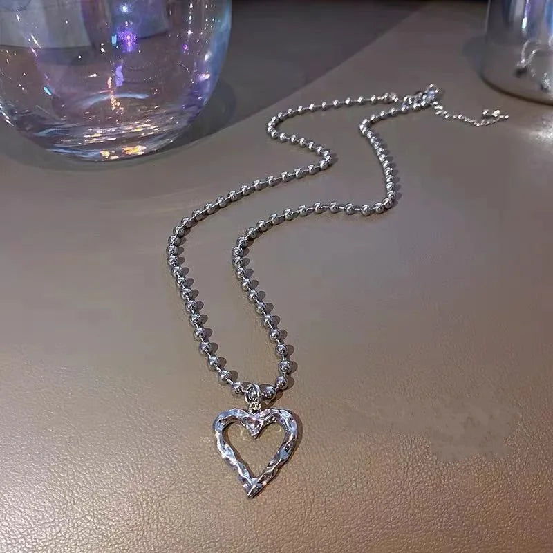Y2K Retro Kpop Silver Color Pendant Necklaces For Women Gothic Zircon Heart Cross Tassel Necklace Punk Clavicle Choker Jewelry