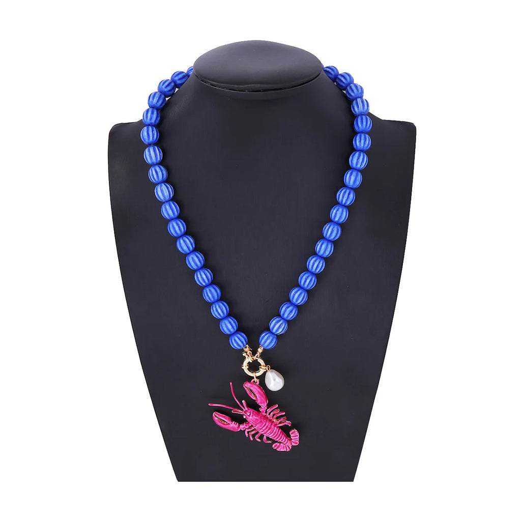 ZAA Ocean Leisure Vacation Style Alloy Lobster Pendant Bead Necklace