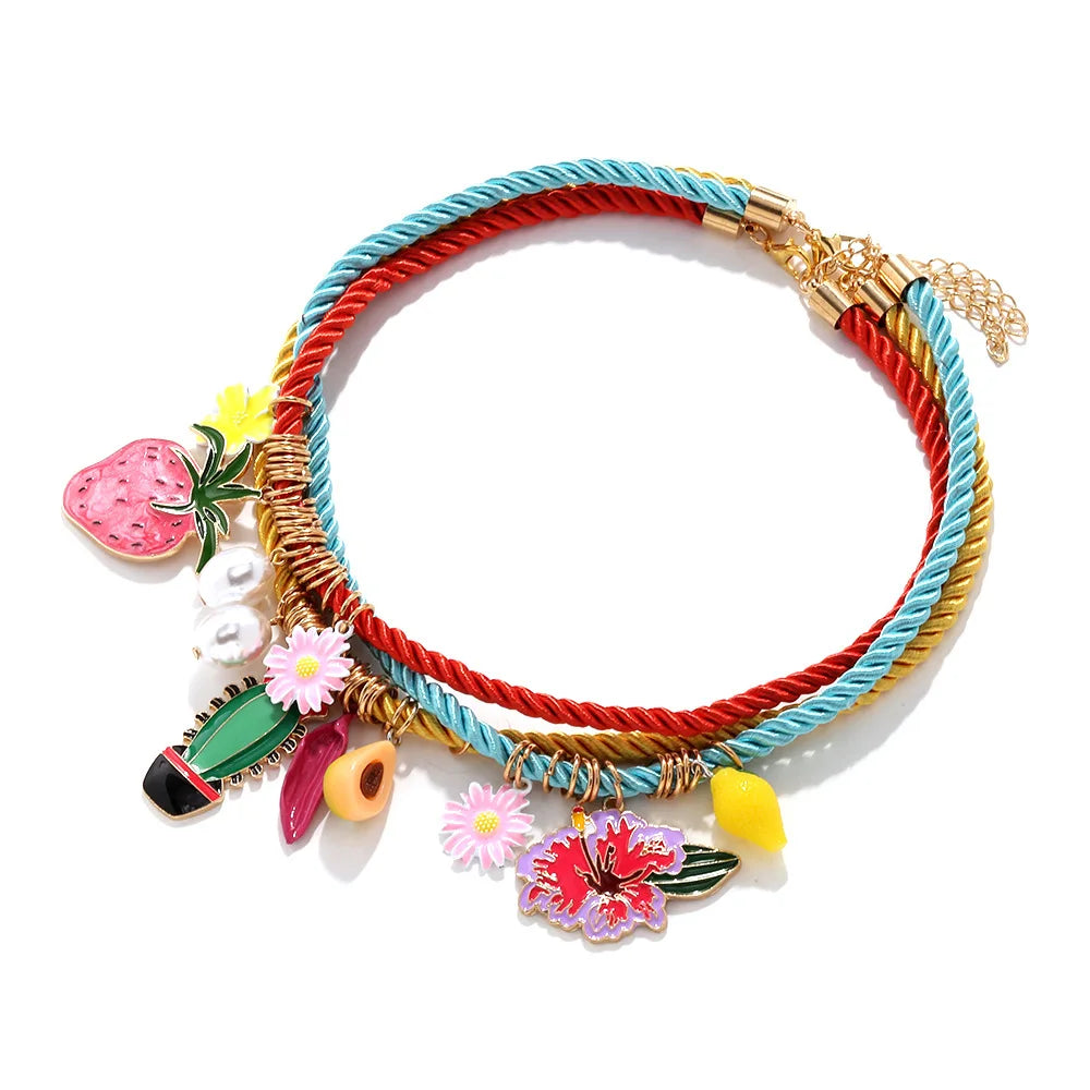 ZAA Summer Sweet Strawberry Cactus Flower Pendant Fruit Necklace