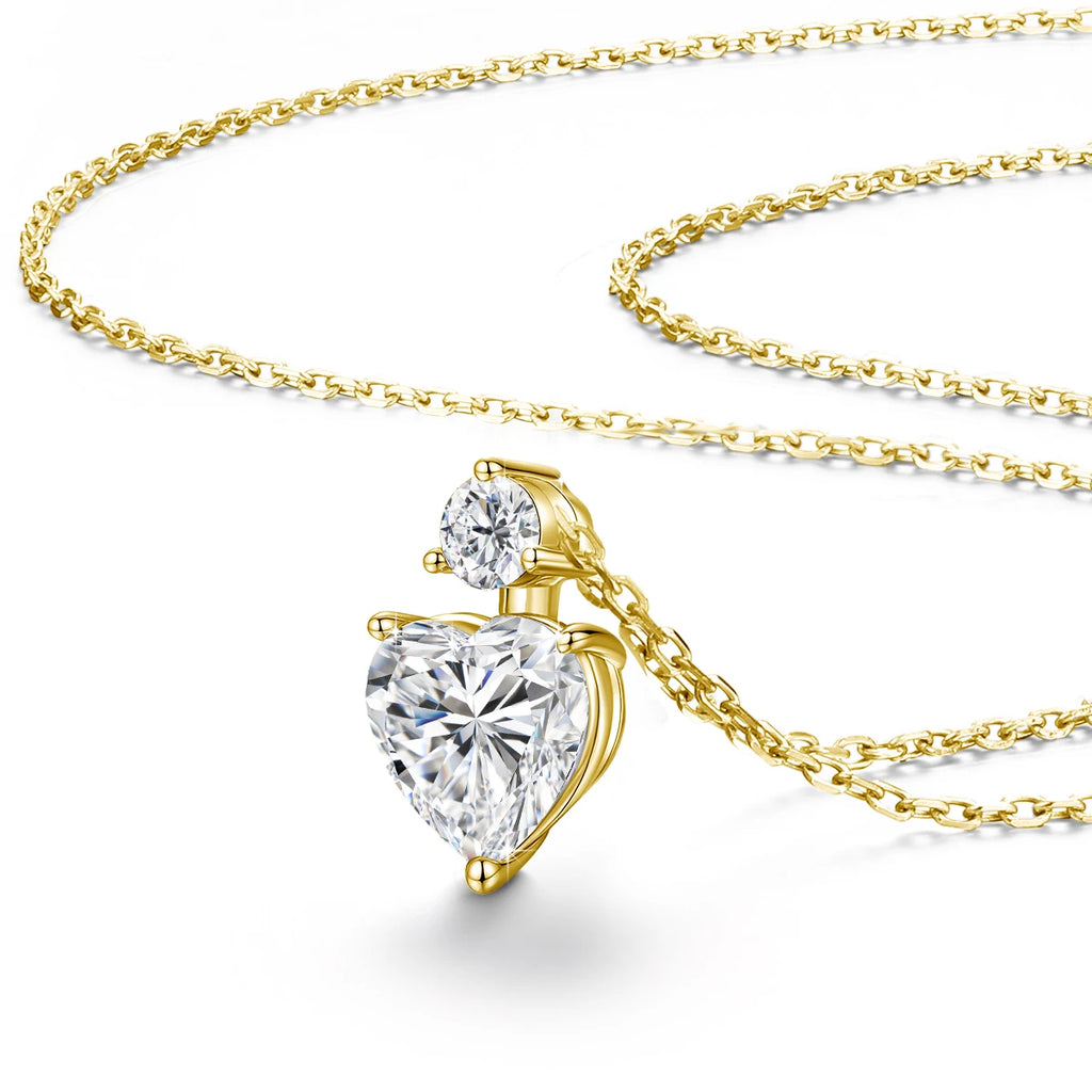 100% Real 14K Gold Filled Romantic Heart Moissanite Pendant Necklace Women AU585 K Gold Solitaire Drop Necklace Wedding Jewelry