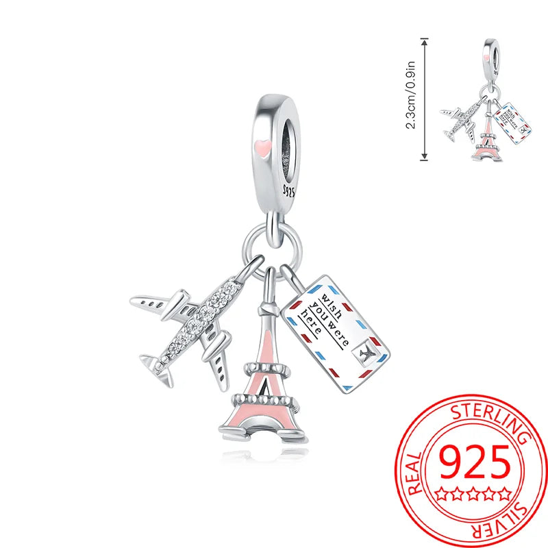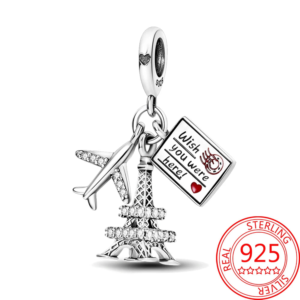 925 Sterling Silver Paris Tower Aircraft Travel Charm Pendant Beads Fit Charm Original Bracelet for Women Jewelry Making