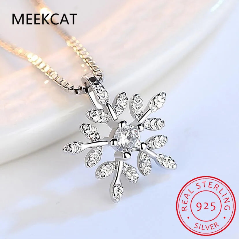 925 Sterling Silver Zircon Snowflake Neckace For Women Gift Chain Choker Collares Christmas Necklace Colar de Prata S-N142