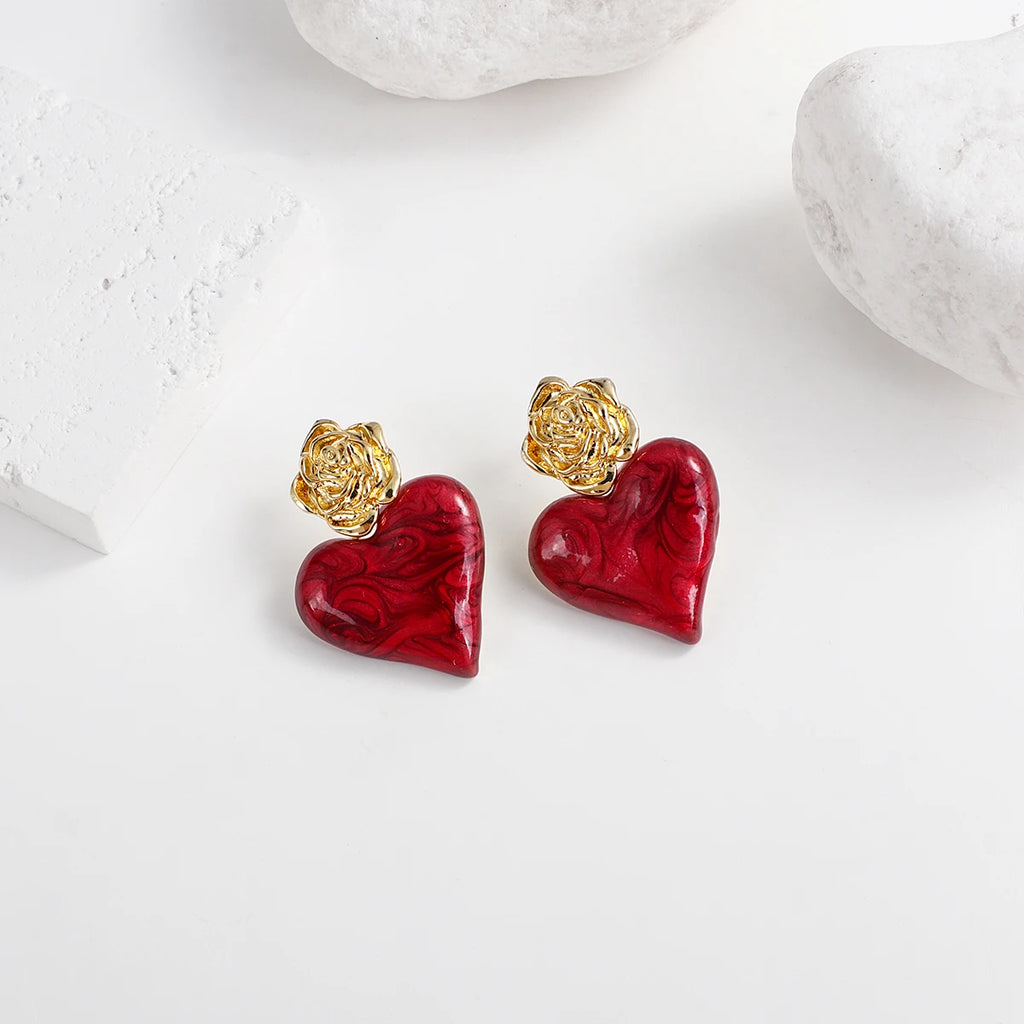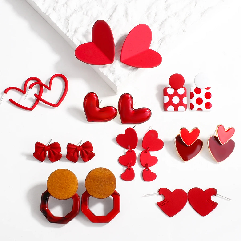 AENSOA Multiple Red Color Earrings Candy Bownot Heart Flower Metal Pearl Drop Earrings for Women Girls Christmas Jewelry Gift