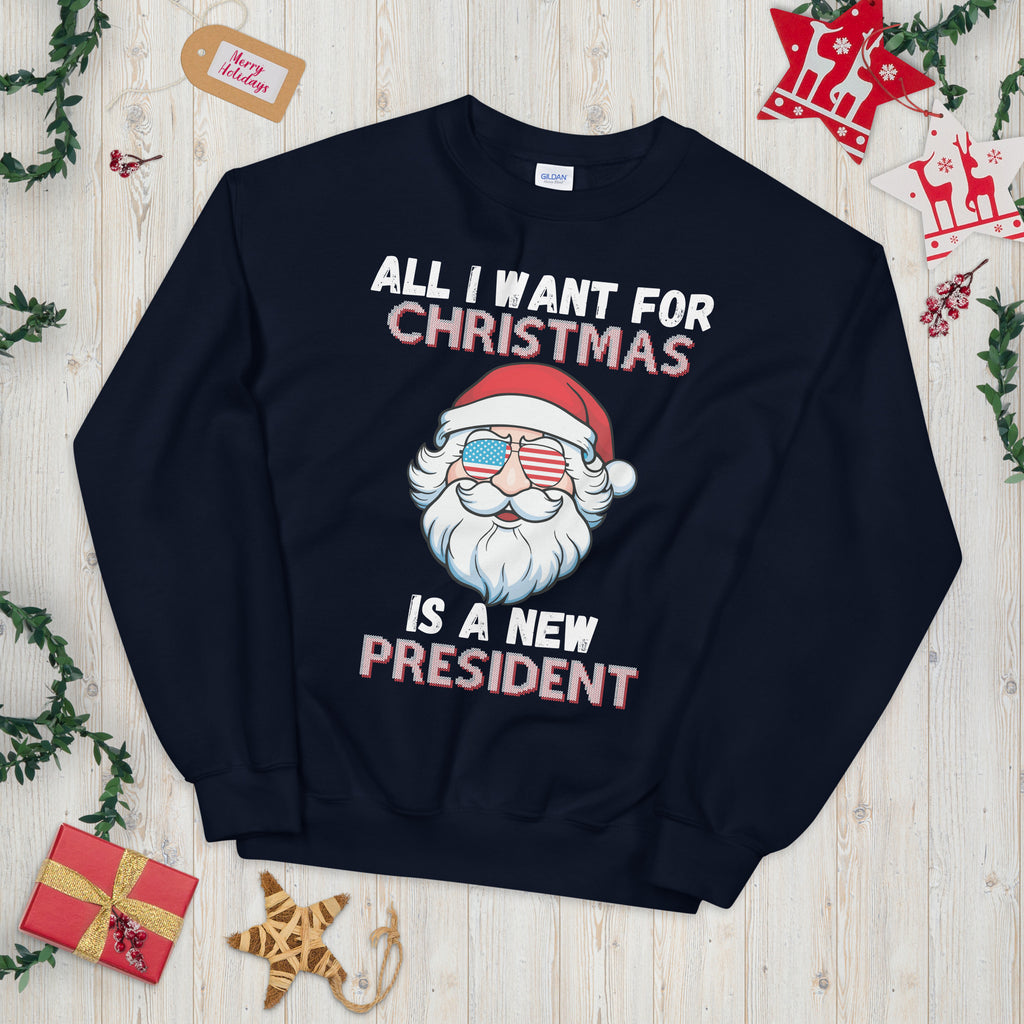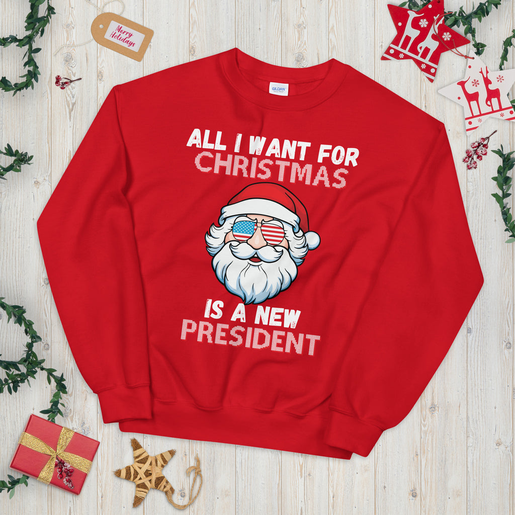 All I Want For Christmas Is A New President, Republican Christmas Sweater, Xmas Conservative Shirt, Anti Biden Sweatshirt, FJB Christmas Tee