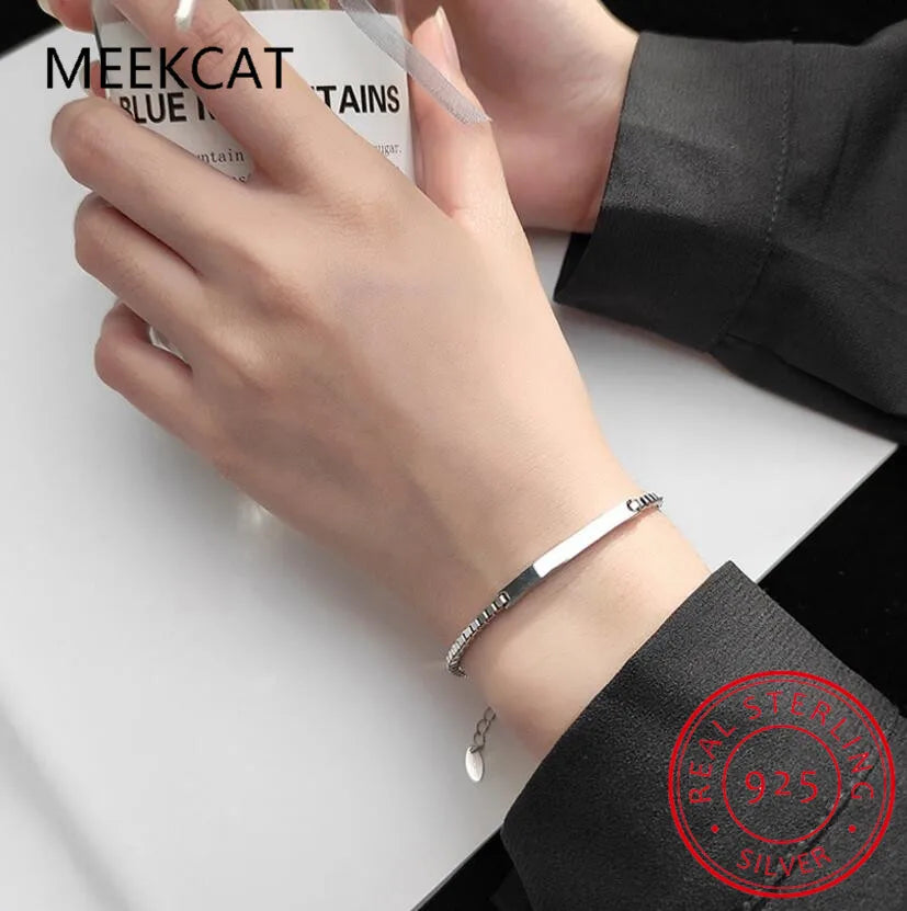 Authentic 925 Sterling Silver Fashion Arc Curved Piece Box Chain Bracelet for Women Wedding Party S925 Jewelry Pulseiras DA1173