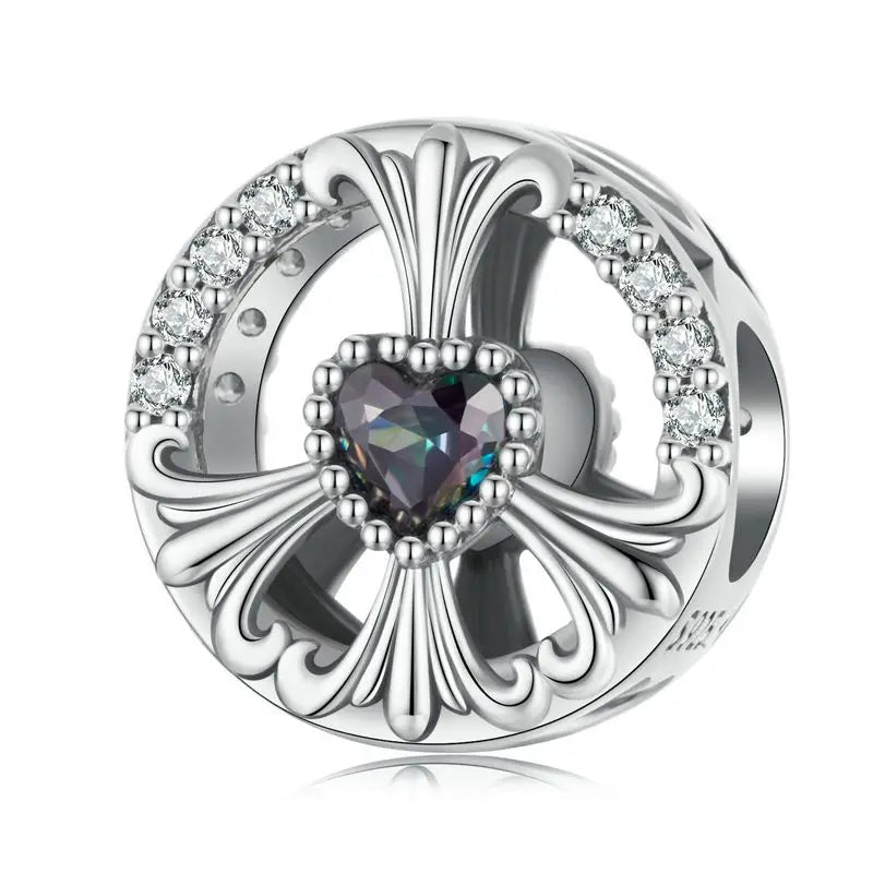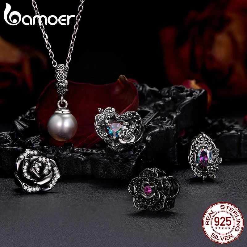 Bamoer 925 Sterling Silver Dark Rose Silicone Beads Vintage Flower Pearl Pendant for Women DIY Bracelet Accessories Punk Gift