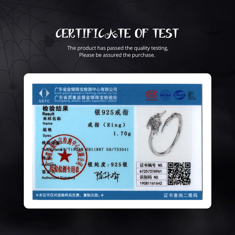 BAMOER 925 Sterling Silver Devil Wings Open Ring Vintage Style Adjustable Finger Ring Original for Women Punk Jewelry Gift