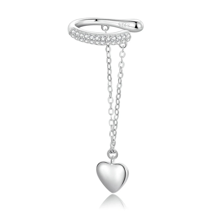 BAMOER 925 sterling silver Mono-earring Clip Earrings for Girl CZ Platinum Plated Stud Earrings Women Wedding Party Jewelry