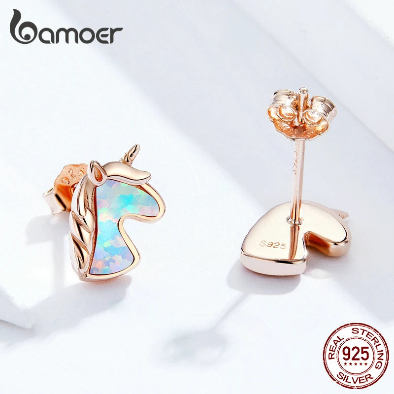 BAMOER Opal Licorne Stud Earrings for Women 925 Sterling Silver Fashion Jewelry Brincos SCE815