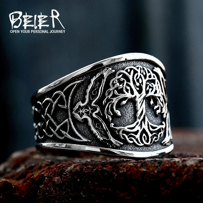 Beier New Style 316L Stainless Steel Tree of Life Signet Ring Classic Men Viking Amulet Rings Nordic Jewelry For Men Wholesale