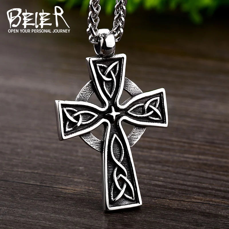 Beier Stainless Steel Vikings Pendant Valknut Celtic Cross Necklace Chain Norse Viking Jewelry LLBP8-505P