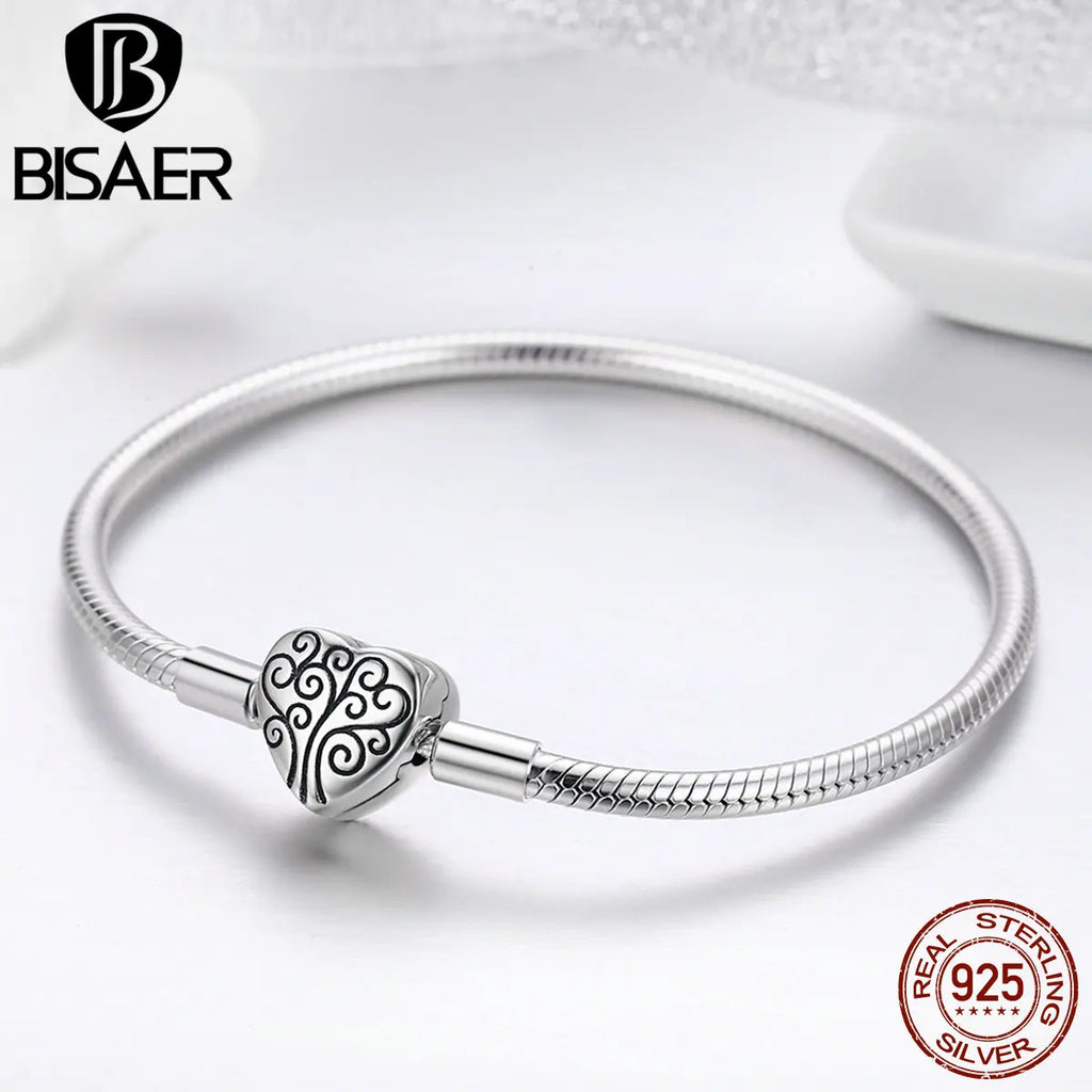 BISAER 100% 925 Sterling Silver Family Tree Of Life Bracelets For Women Heart Snake Basic Bracelet Bead & Charm DIY Fine Jewelry