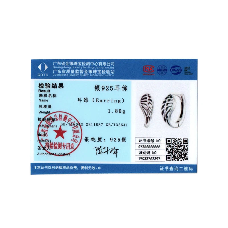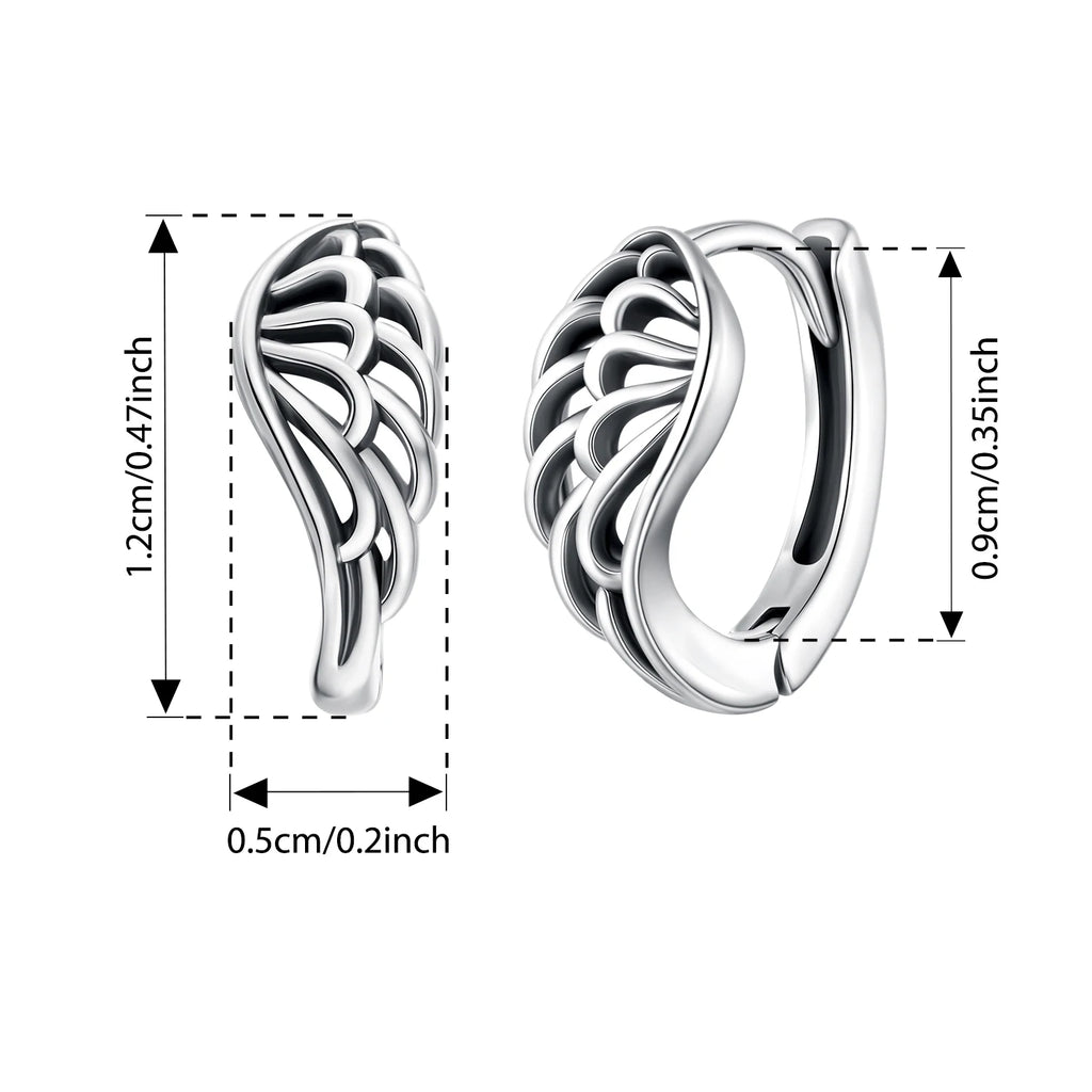 BISAER Solid 925 Sterling Silver Vintage Hollow Wing Hoop Earrings Hip Hop Punk Style For Women Party Original Fine Jewelry