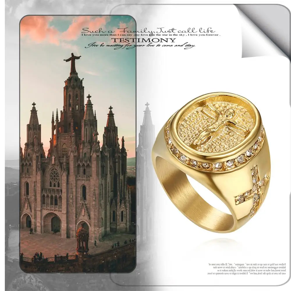 BONISKISS Jesus Cross Catholic San Benito Ring Stainless Steel Rings Mens Religious Jewelry Male Gift Party Jewelry Dropshipping