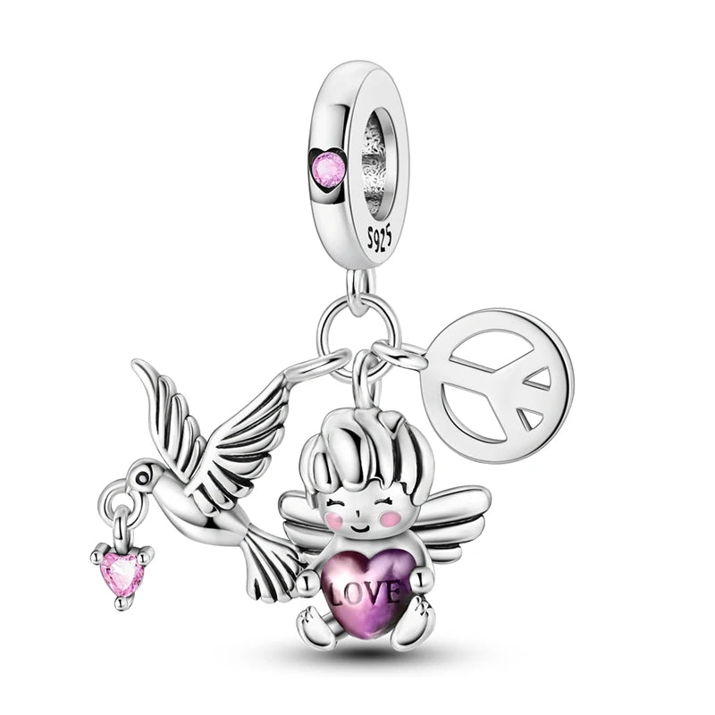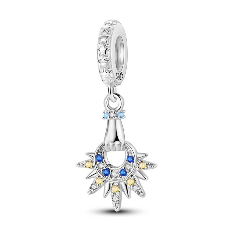 Brilliant Sunflower Bee Flower Charm Beads 925 Silver Dangle Pink Cat Paw Print Safety Chain Fit Original Bracelet DIY Jewelry