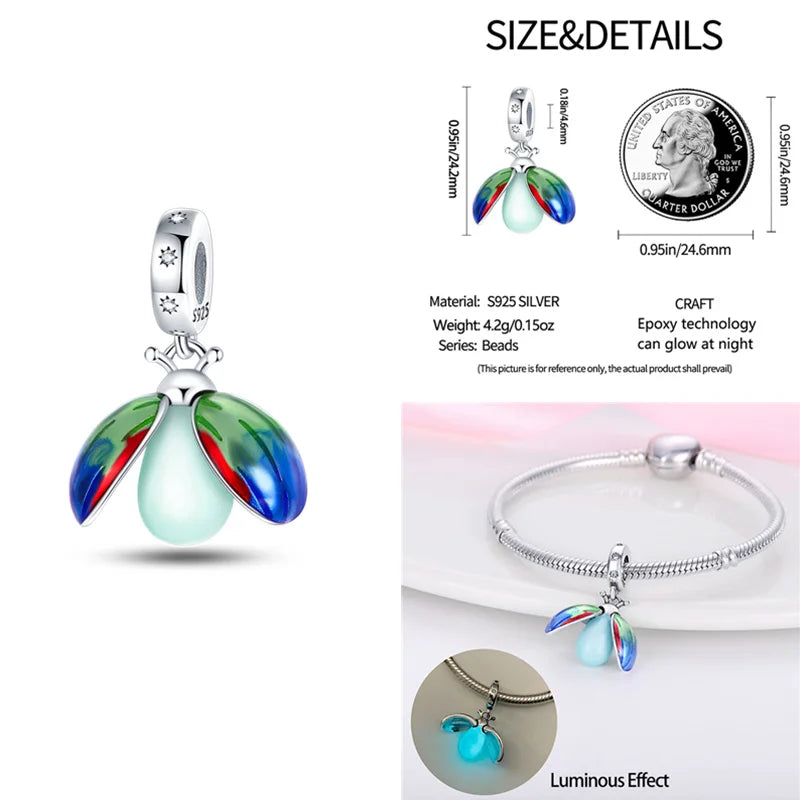 Charms Fit Pandora Original Bracelet Real s925 Sterling Silver Beads Luminou Pendants Firefly Ocean Series Dangle Fine Jewelry
